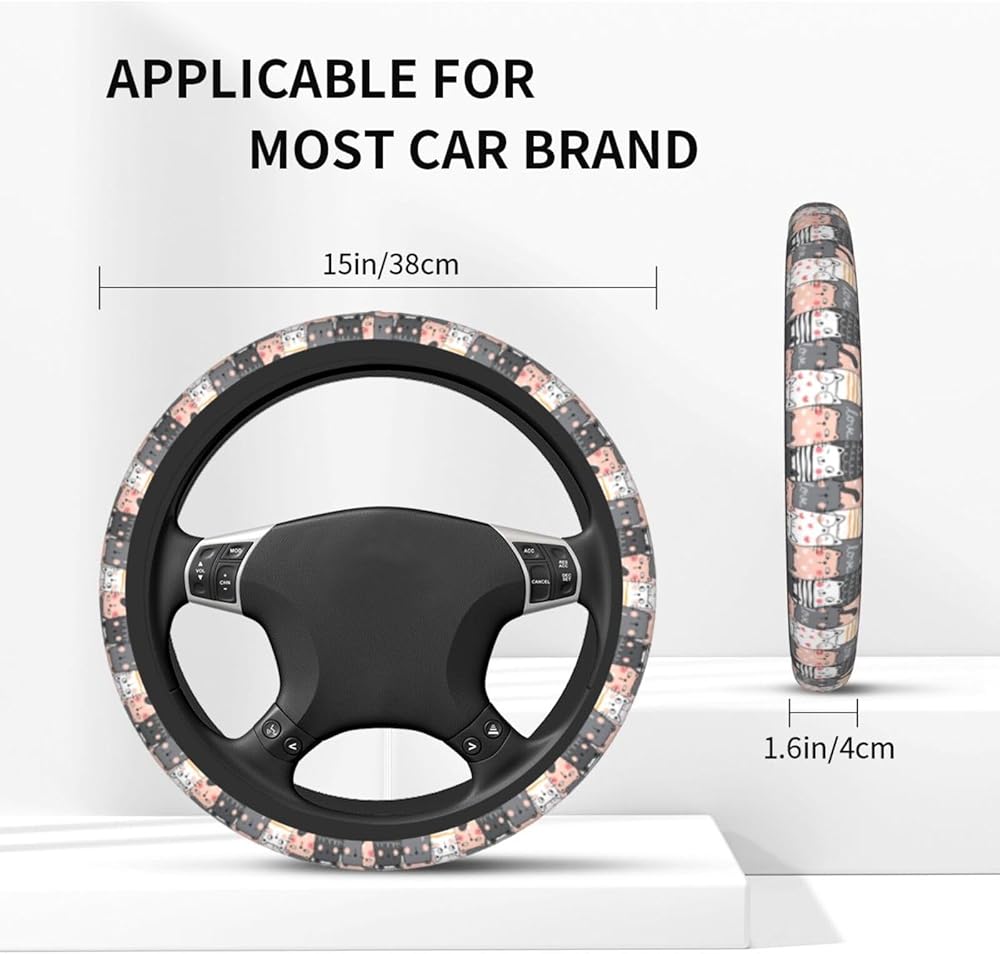 ملاءمة عالمية: تم تصميم غطاء عجلة القيادة الخاص بنا ليناسب معظم عجلات القيادة القياسية، مما يضمن ملاءمة عالمية لمجموعة واسعة من المركبات، بما في ذلك السيارات والشاحنات وسيارات الدفع الرباعي