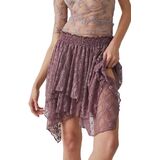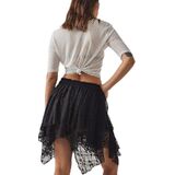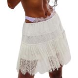 Features: Sexy lace pleated skirts, skater design, double-layered lace patchwork, elastic low waist, A-line, asymmetrical ruffle hem flowy skirt, not see-through, solid color, y2k fashion going out streetwear, role-play lingerie for women.