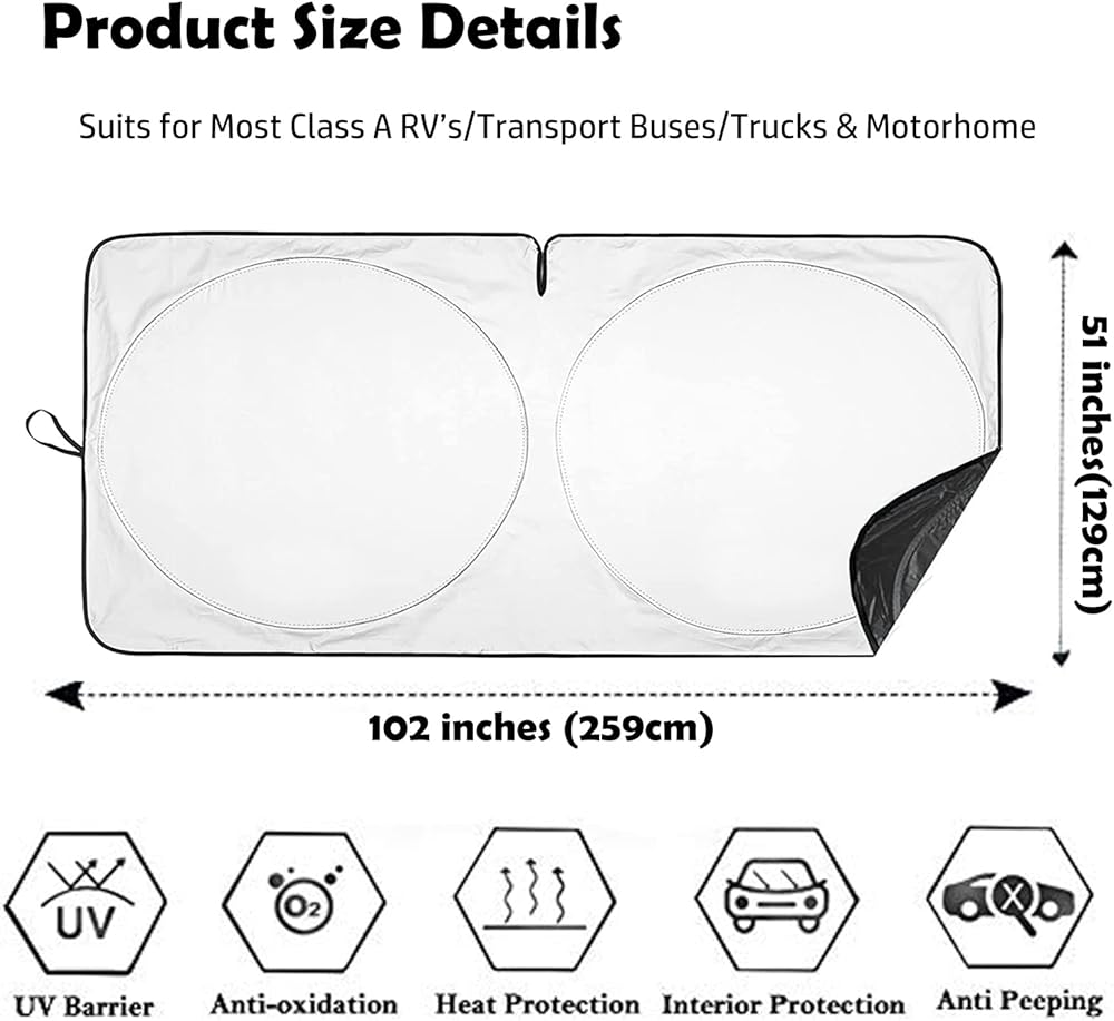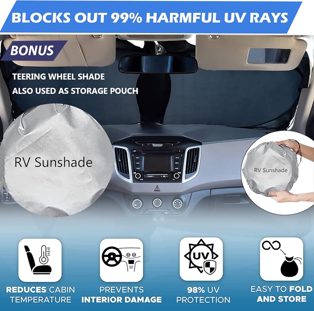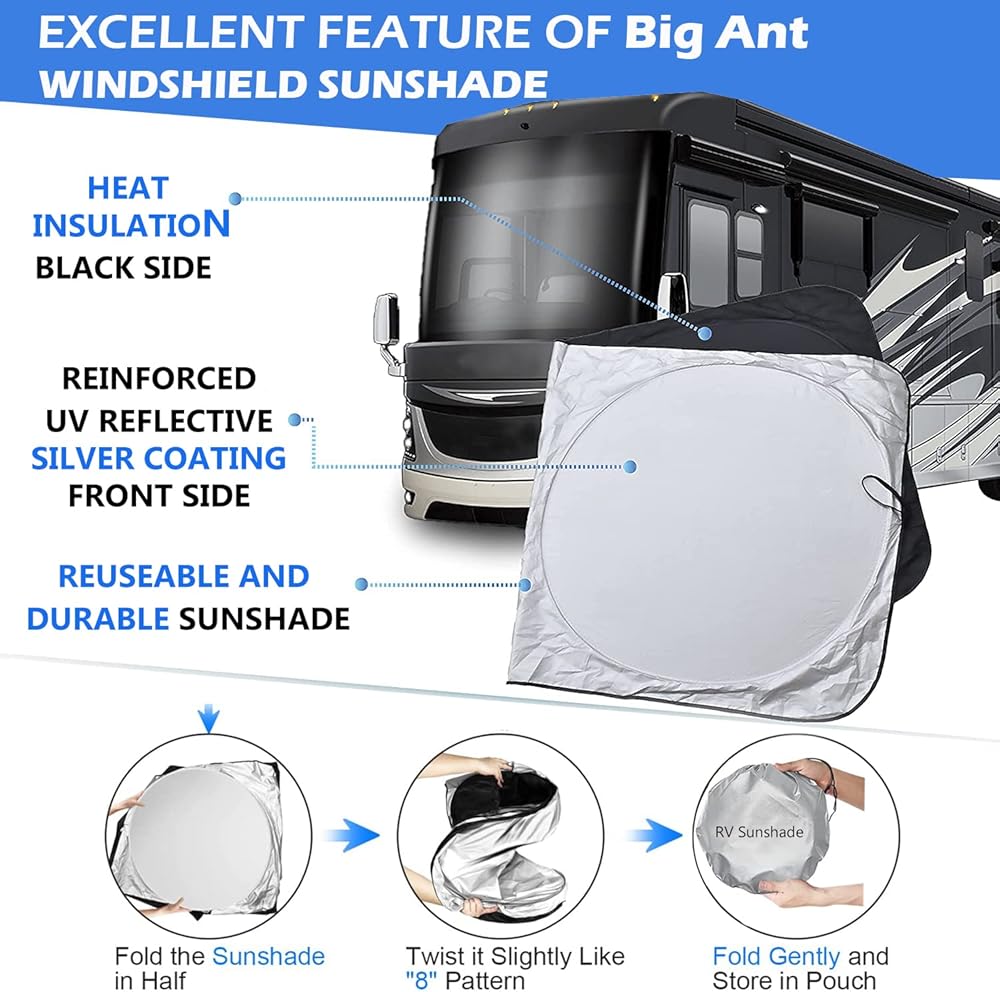 مظلة الزجاج الأمامي لحافلة Big Ant RV، مظلة شمسية عاكسة للأشعة فوق البنفسجية بقوة 240 طن تحافظ على برودة منزل RV الخاص بك، مخصصة للمركبات الترفيهية الأمامية والشاحنات والبيوت المتنقلة والحافلات الكبيرة