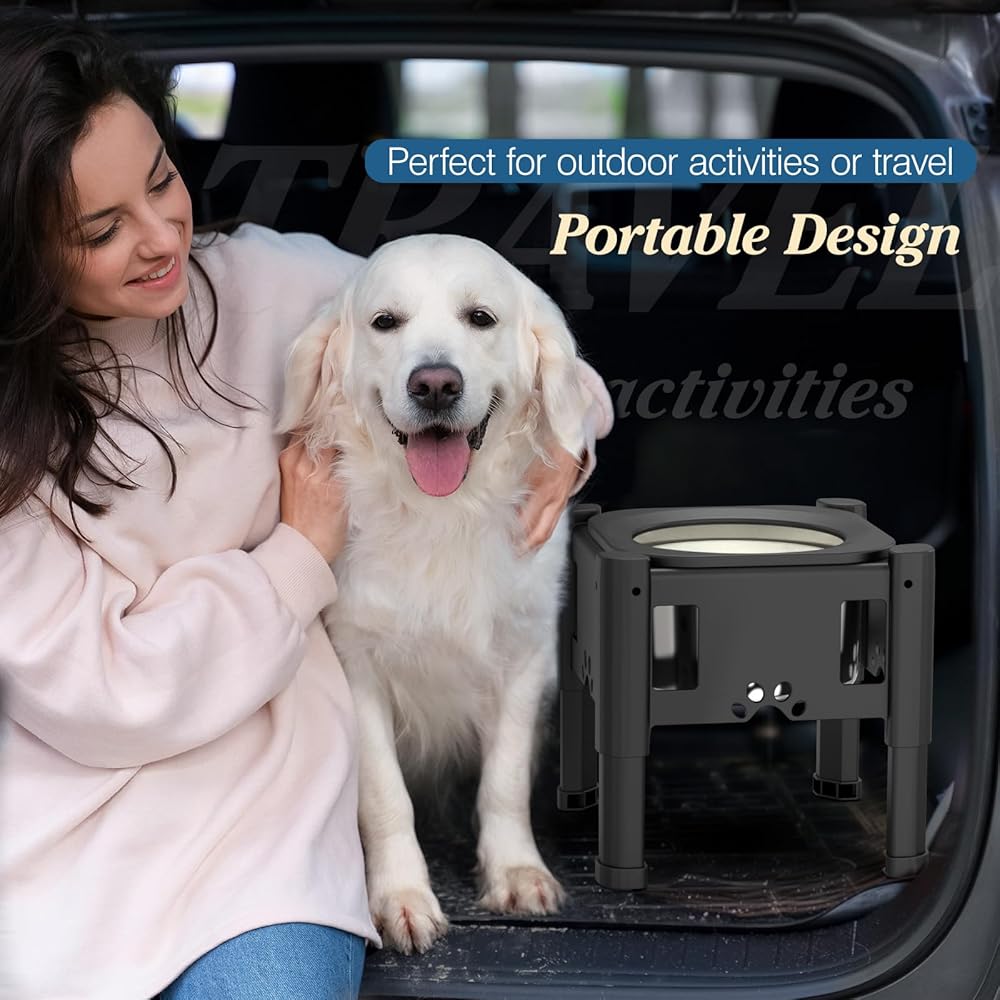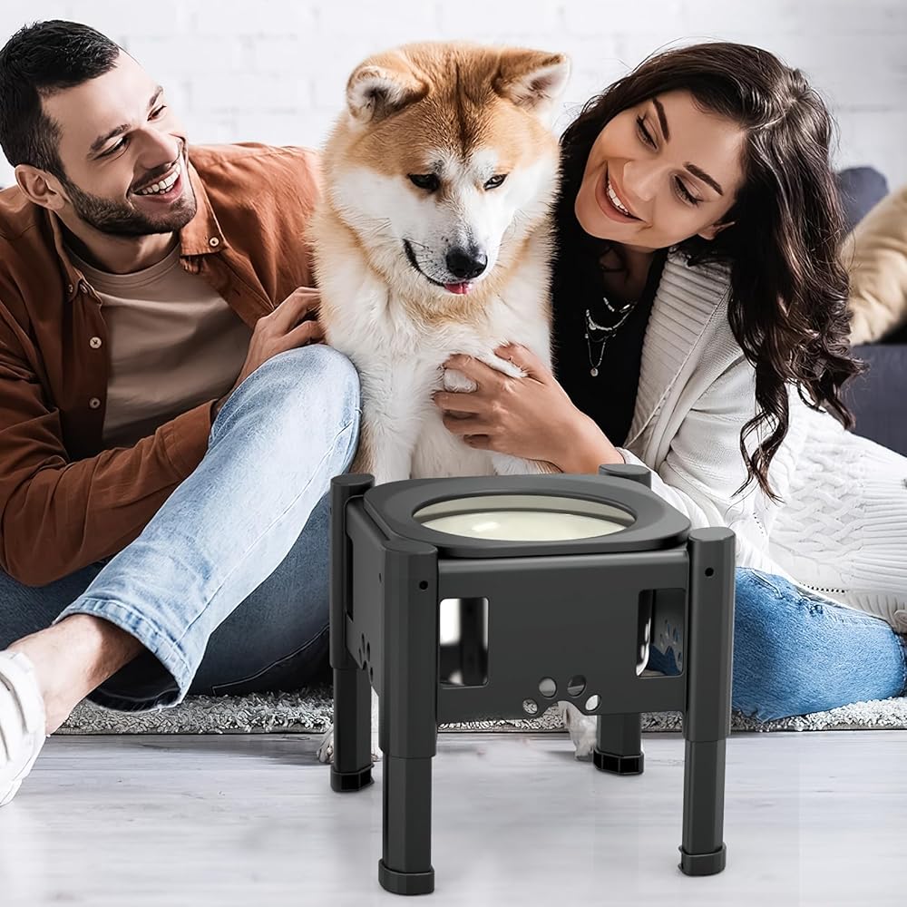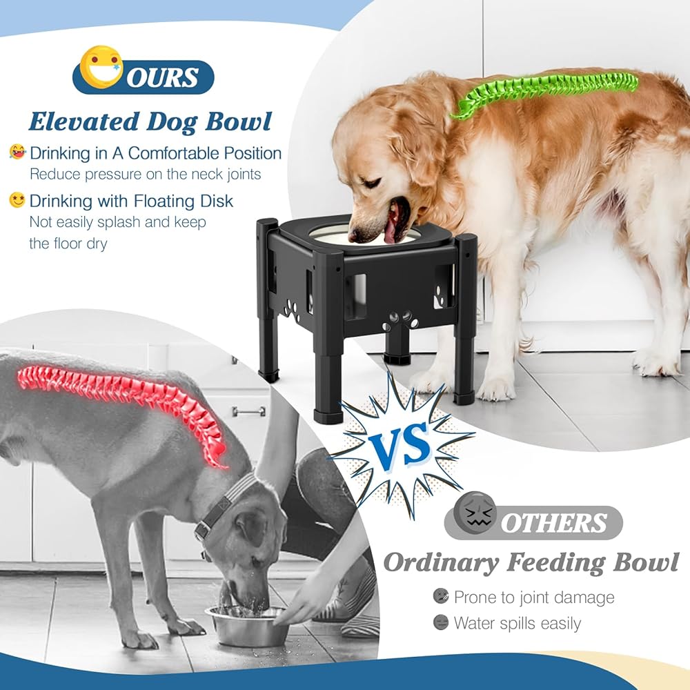 【Reduce Joint Pressure】: This elevated dog bowls stand can be adjusted to 3 levels (15.6cm/6.1''-19.6cm/7.7''-23.6cm/9.3''). Easily adjust by pressing the circular button on the stand. The raised stand design provides a comfortable position for small to large dogs to drink and relieves the stress on the pet's neck and joints. Great ideal for older dogs, dogs with muscle or joint problems.