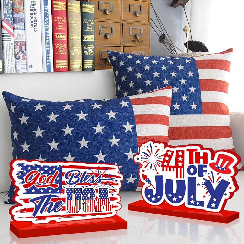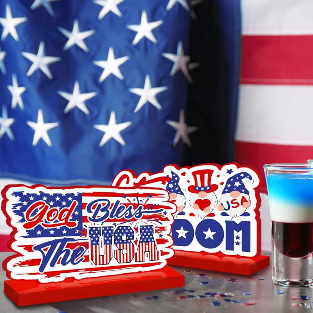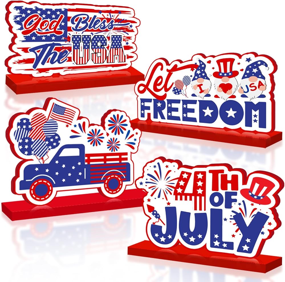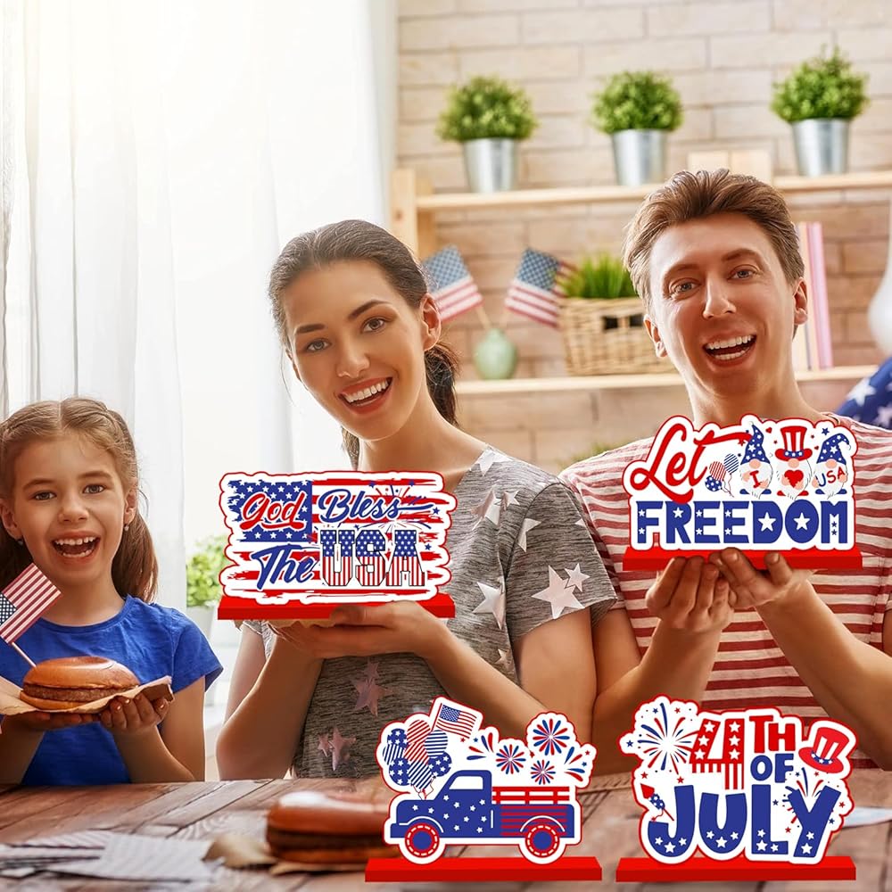 4 قطع ديكورات الرابع من يوليو قطع مركزية خشبية للطاولات ديكورات حفلات الرابع من يوليو وديكورات يوم الاستقلال ومستلزمات اليوم التذكاري للحفلات ذات الطابع الوطني الأمريكي