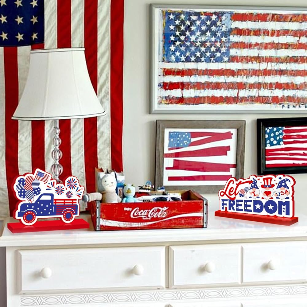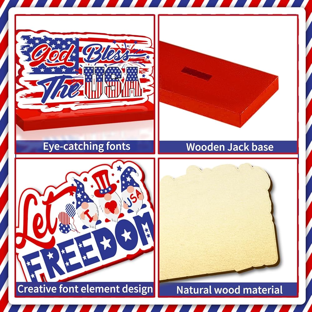 Quality Material: Our 4th of July decorations are made of high quality wood, which can be durable. No odor, non-toxic, clear printing, beautiful and eye-catching, not easy to fade. 4th of July decorations is neatly cut, you can easily install the 4th of July decorations wooden sign with its base, the 4th of July is solid and will not detach easily.