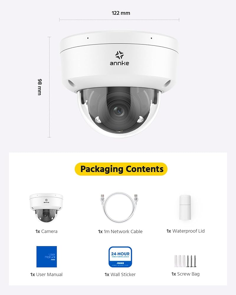 【تركيب سهل عبر PoE وIP67+IK 08 مقاوم للتخريب، اتصال PoE البسيط يجعل من السهل التركيب، ويمكن لكاميرا PoE IP هذه تحقيق نقل الفيديو والطاقة عبر كابل شبكة واحد فقط. بالإضافة إلى ذلك، يتكيف IPC مع تصميم تصنيف IP67 المقاوم للطقس وIK 08 المقاوم للتخريب، والذي يمكنه تحمل التأثيرات القاسية، وهو مثالي للاستخدام في المنزل أو التجاري.