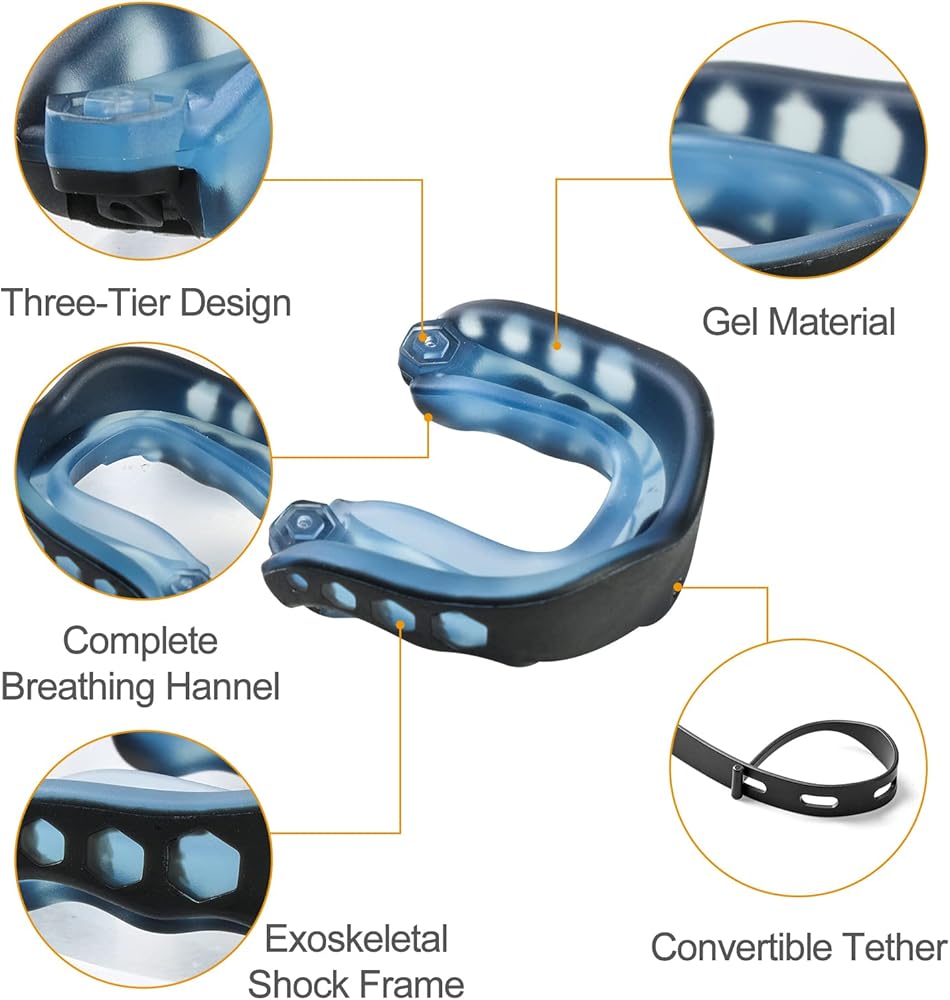 Our mouthguard are the guarantee of sports safety. They are light and sturdy, fit teeth more comfortable and are easier to absorb shocks, make you to enjoy exercise. The multi-ventilation holes design to allow you to resume breathing faster, and comprehensively protect your sports experience.