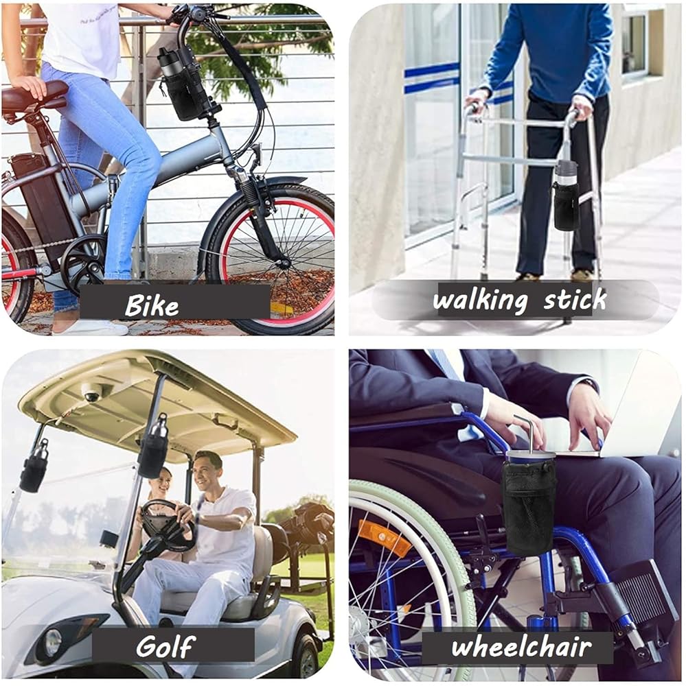 حامل أكواب الدراجة من HOUSON، زجاجة مياه بمقود الدراجة مع جيب شبكي أكسفورد للهاتف، مشروب للطرق الجبلية والدراجة الإلكترونية للأطفال وطرادات الكراسي المتحركة