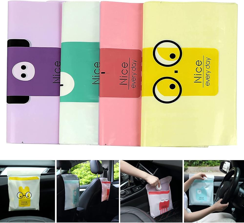 【ما الذي يمكنني الحصول عليه】 من خلال شراء أكياس القمامة المحمولة التي تستخدم لمرة واحدة، يمكنك الحصول على 60 قطعة من أكياس قمامة السيارة، والتي تتكون من 15 قطعة في 4 قطع ألوان.