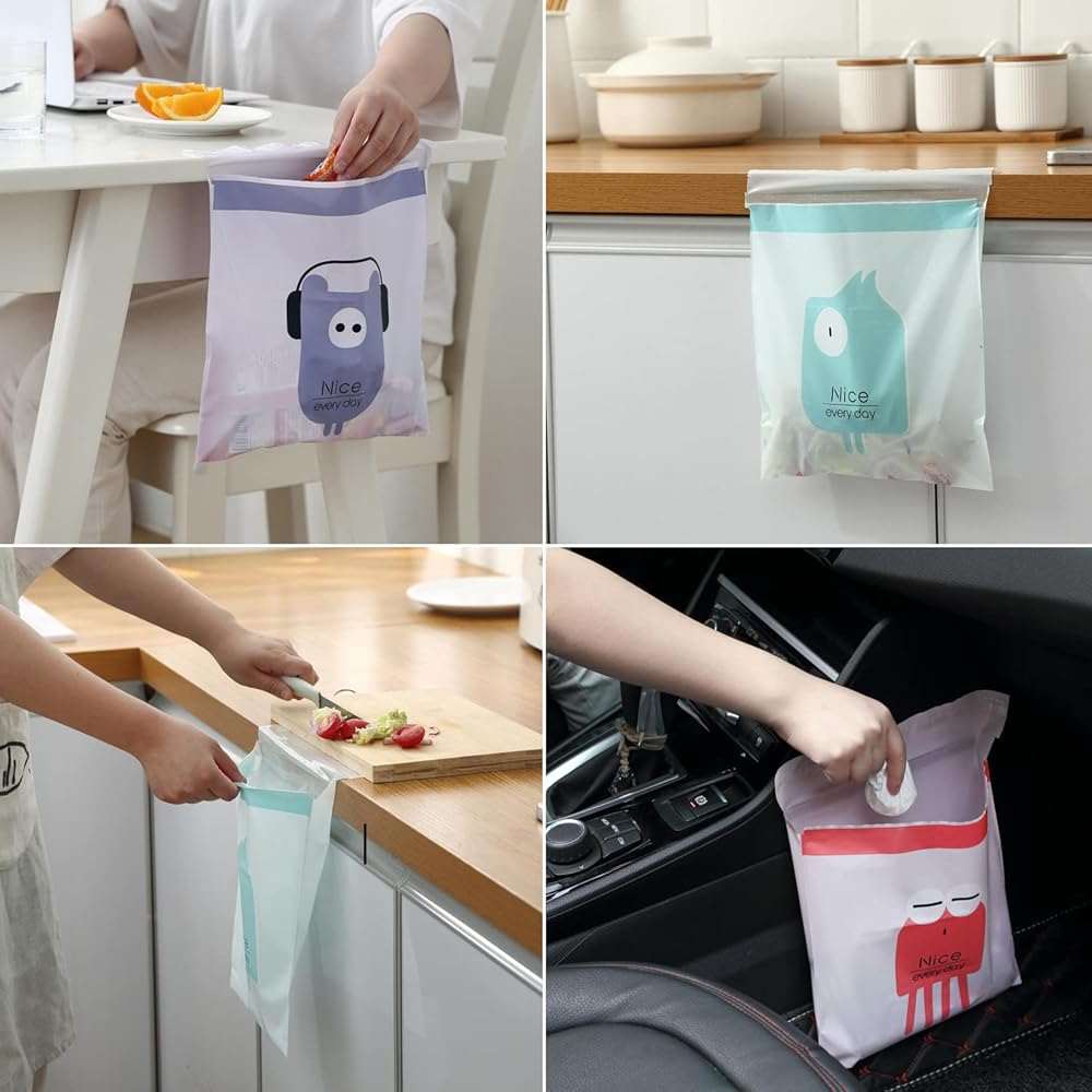 【تستخدم على نطاق واسع】 يمكن استخدام أكياس القمامة المحمولة هذه التي تستخدم لمرة واحدة في السيارات والتخييم والمطابخ وغرف النوم وغرف المعيشة والحمامات والمكاتب وأجنحة المستشفيات وما إلى ذلك. حقيبة القمامة مجهزة بشريط خاص يمكن ربطه بسهولة بالسيارة. أو الجدار دون ترك أي أثر. يمكن استخدامه أيضًا كحقيبة تخزين وحقيبة للقيء.
