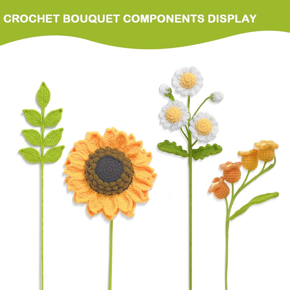 أناقة خالدة: تم تصميم كل زهرة في هذه الباقة على يد حرفيين ذوي خبرة، وتم حياكة كل زهرة في هذه الباقة بدقة حتى تصل إلى الكمال. على عكس الزهور الحقيقية، فإن أزهار الكروشيه هذه لن تذبل أو تتلاشى أبدًا، مما يضمن جمالًا يدوم طويلاً يمكن الاستمتاع به لسنوات قادمة.