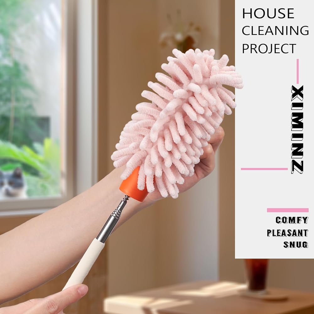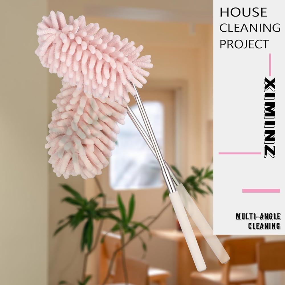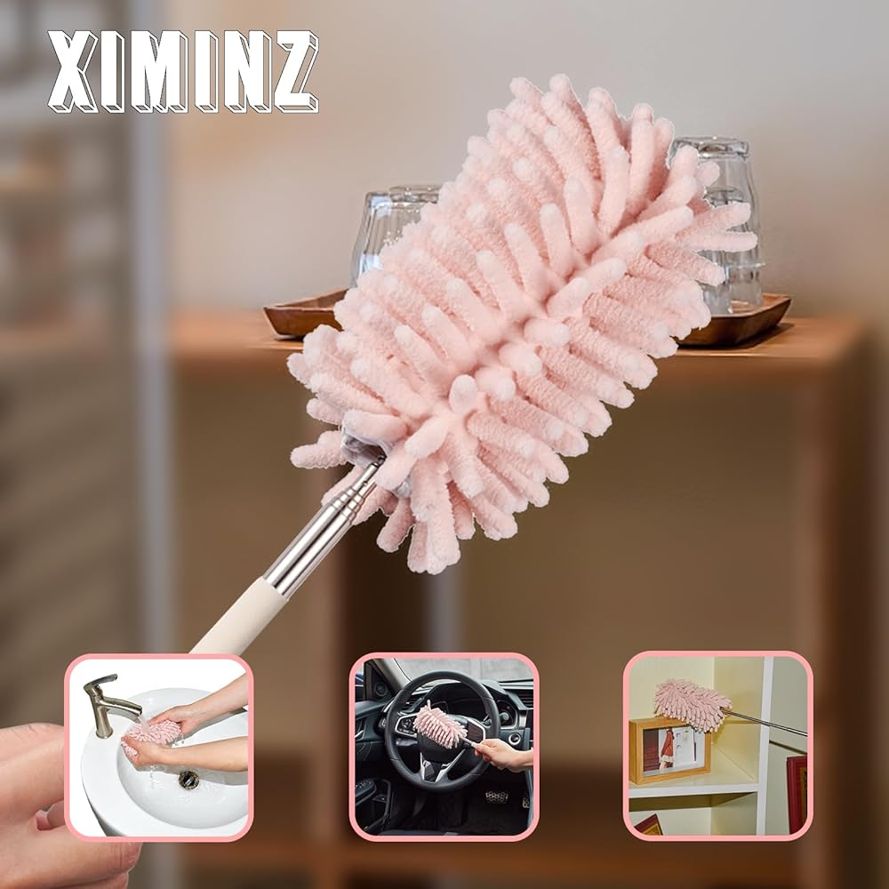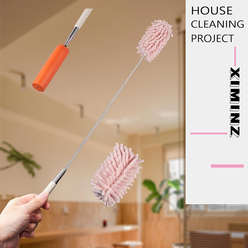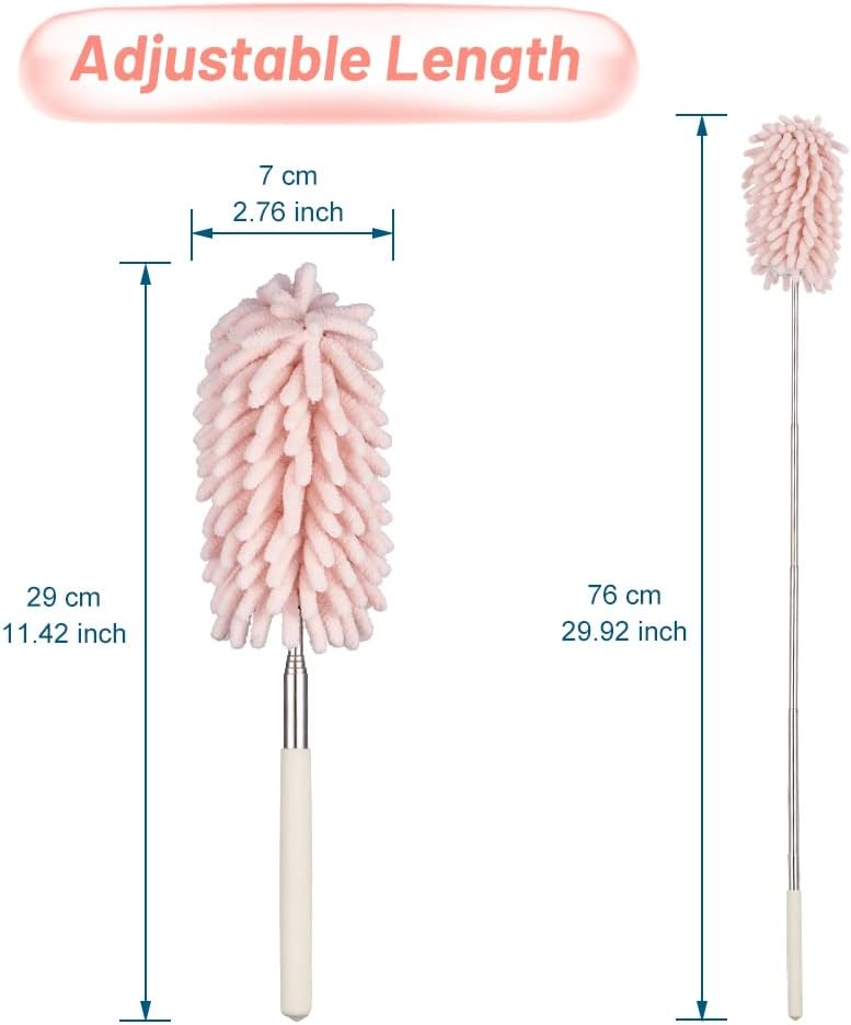 1.Duster with extension pole: with high-quality 11 inch long stainless steel telescopic pole, you can use these mini dusters for cleaning and extend the length of duster pole from 11 to 30 inches to clean the corners in different height easily.