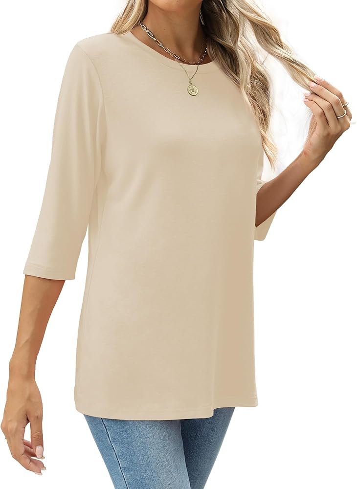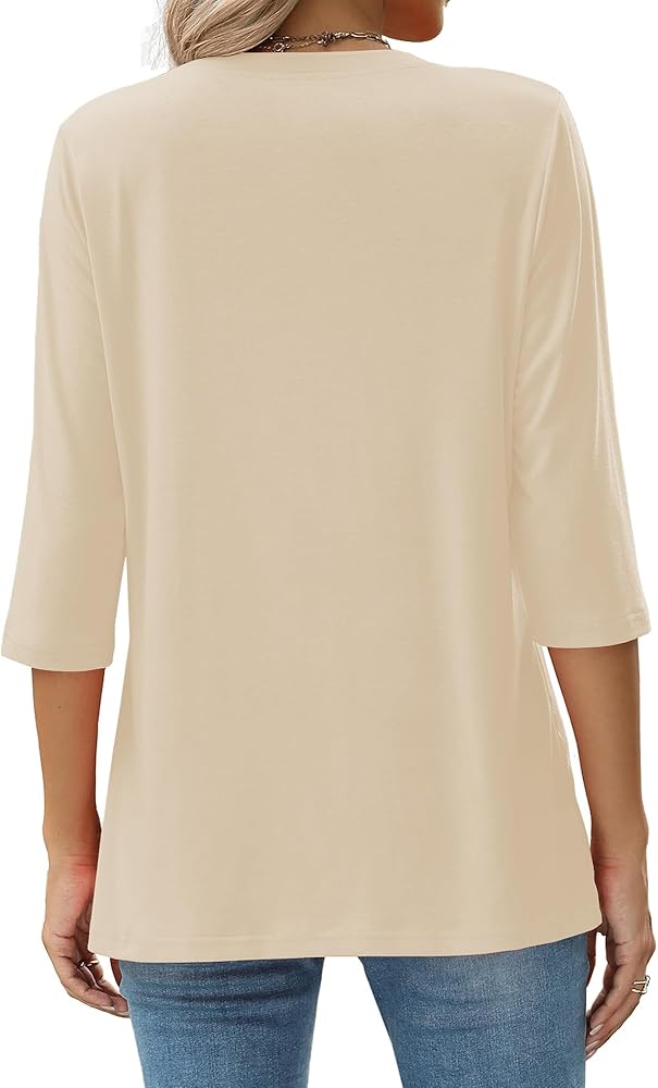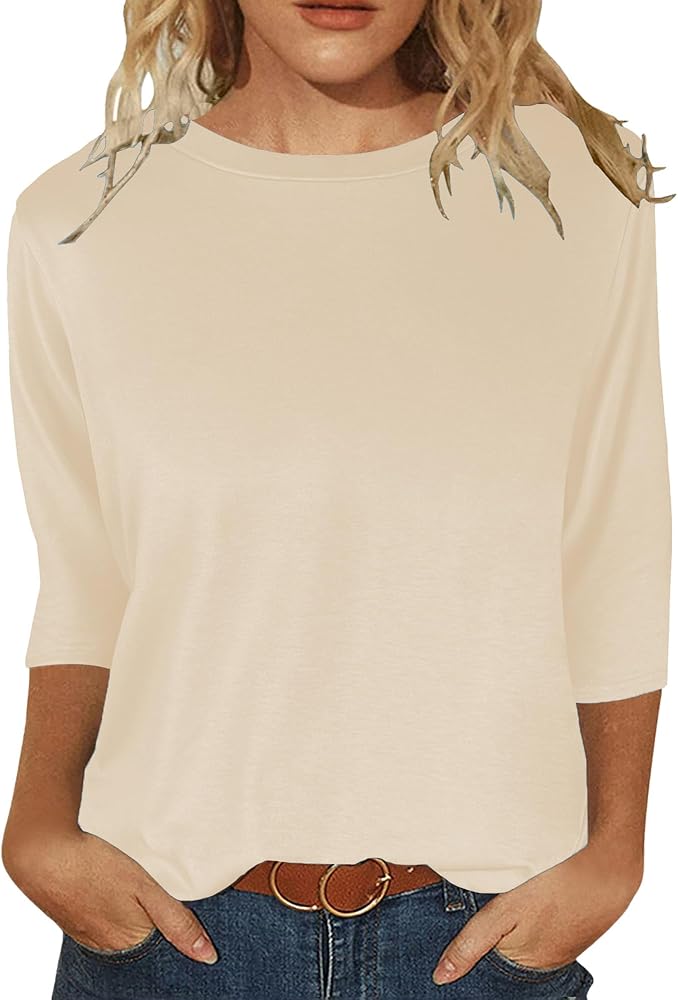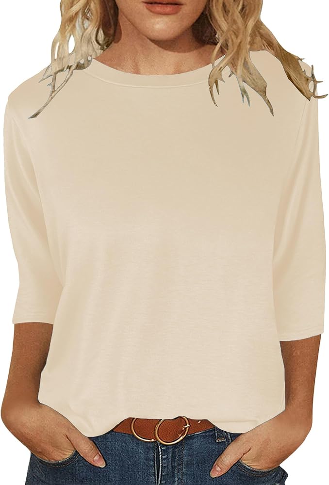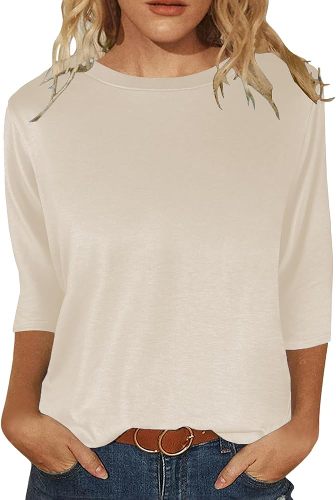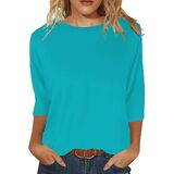 قمصان نسائية بأكمام 3/4 ورقبة دائرية وبلوزات غير رسمية فضفاضة وقمصان بلون واحد