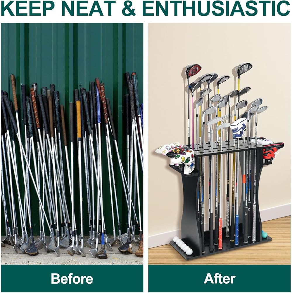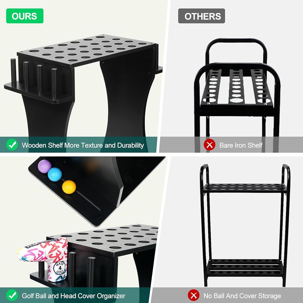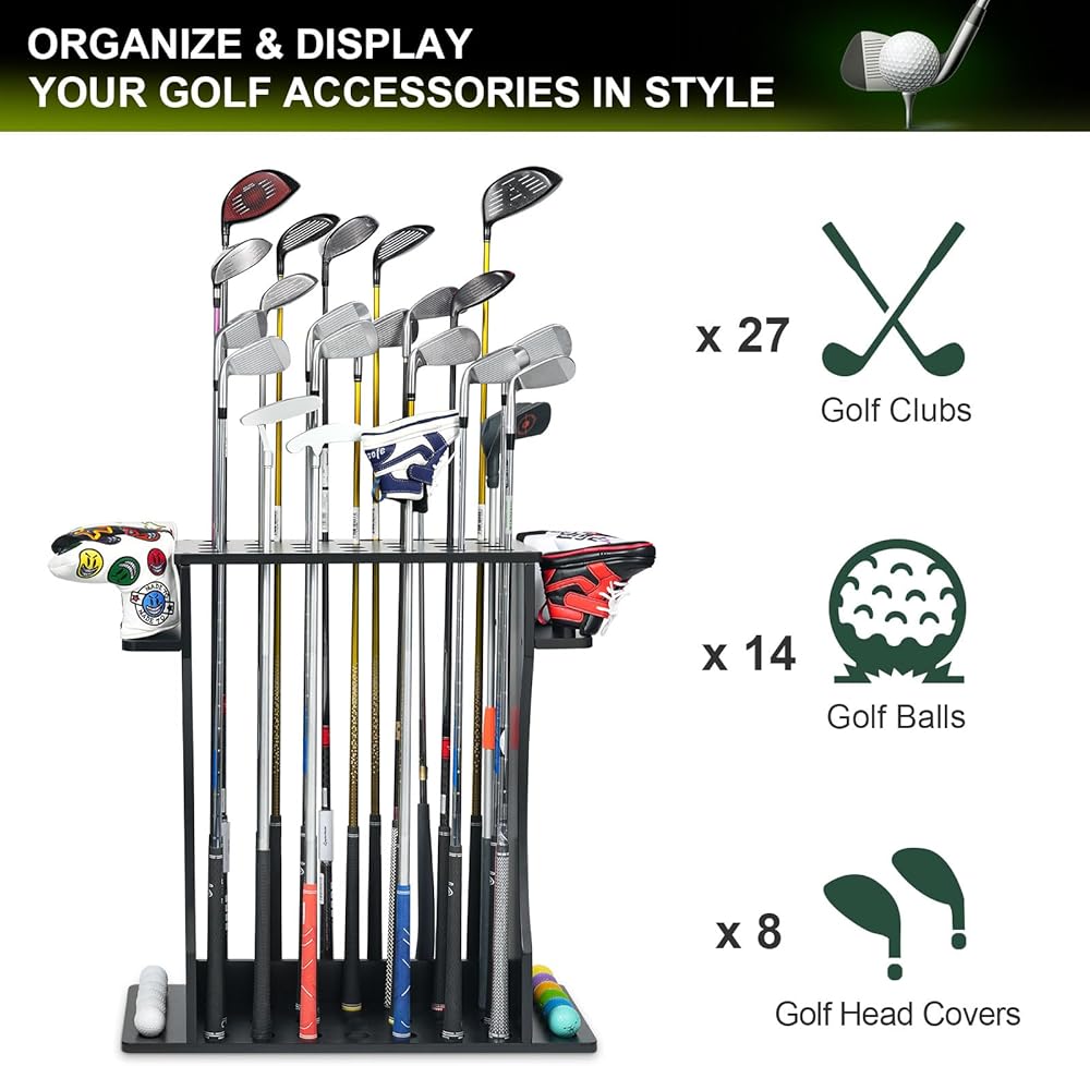 حامل نادي الجولف الخشبي من XCSOURCE، رف عرض أرضي لحامل مضرب الجولف، رف نادي الجولف لـ 27 ناديًا، كرات الجولف، 8 أغطية مضرب للتخزين، منظم نادي الجولف لمحاكاة مرآب نادي المنزل الداخلي
