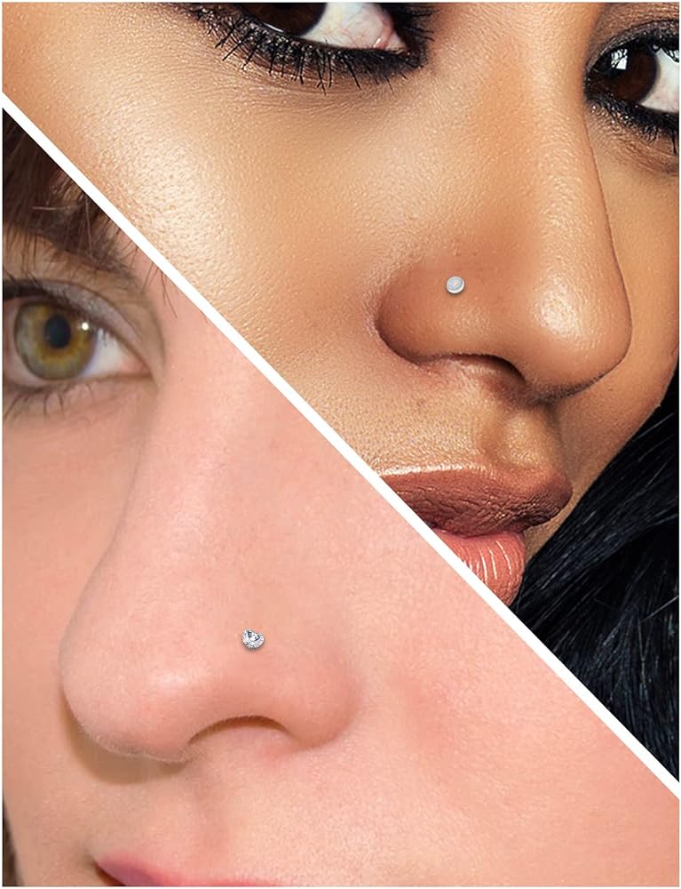 مجوهرات ثقب الأنف من التيتانيوم - يتضمن طلب واحد زوجين من مسامير الأنف ذات الظهر المسطح، يمكن استخدامها لحلقات الأنف، وأقراط الزنمة، وأقراط الغضروف، وأقراط الحلزون الأمامية، ومجوهرات ثقب محارة الأذن. سعر اقتصادي مع تصميم عصري يمنحك يومًا ملونًا. .