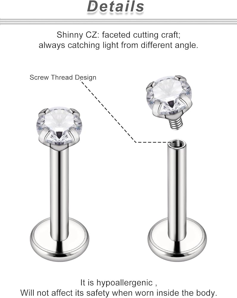 حلقات الأنف من التيتانيوم G23 - التيتانيوم هو معدن طبي من الدرجة المزروعة وواحد من أكثر المعادن الصديقة للبشرة، ويزن أقل من الفولاذ المقاوم للصدأ، صلب وليس من السهل الانحناء، لا يسبب الحساسية، لا يسبب التهيج، لا يحتوي على النيكل، ولا يؤدي. إنها مادة عالية الجودة لثقب المجوهرات. لا تفقد بريقها أو تتحول إلى اللون الأخضر. حتى إذا كان لديك بشرة حساسة، يمكنك ارتداء ثقوب الأنف المصنوعة من التيتانيوم النقي بشكل مريح، وهي اختيار جيد للنوم وممارسة الرياضة والاستحمام.