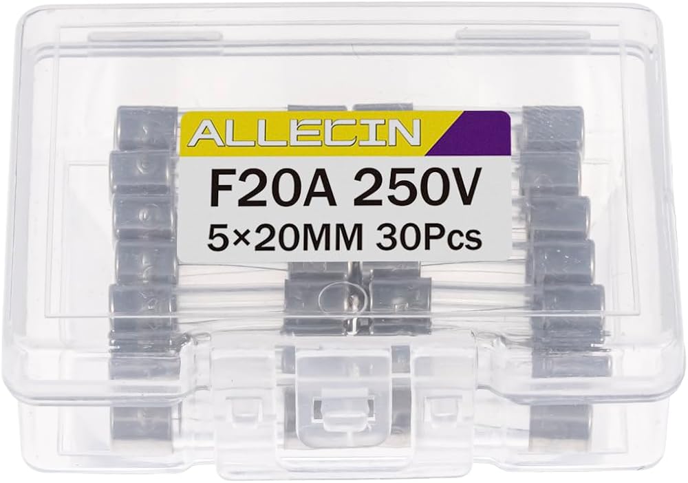 ALLECIN 20A 250V 5x20MM صمام زجاجي سريع النفخ 20 أمبير 250 فولت 0.2 × 0.78 بوصة صمامات أنبوبية سريعة المفعول F20AL250V (عبوة من 30 قطعة)