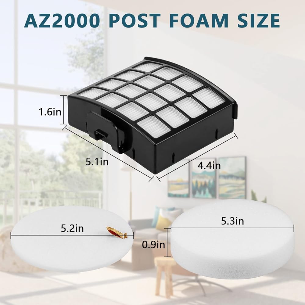 • مجموعة AZ2000 متضمنة: - مجموعة المرشحات كاملة مع 2 مرشحات من الرغوة واللباد، 2 مرشح HEPA بكفاءة H12 لاحتجاز معظم الغبار، 1 فرشاة تنظيف تساعدك على التعامل مع الغبار الذي يتشبث بمرشحات هيبا. يتم تصنيع بدائل فلتر AZ2002 من مواد عالية الجودة مما يوفر لك مساحة معيشة مريحة ونظيفة. تحتوي مجموعة الفلتر البديلة xffka2000 على كل الفلتر المطلوب لإكمال التثبيت القياسي للمكنسة الكهربائية الخاصة بك