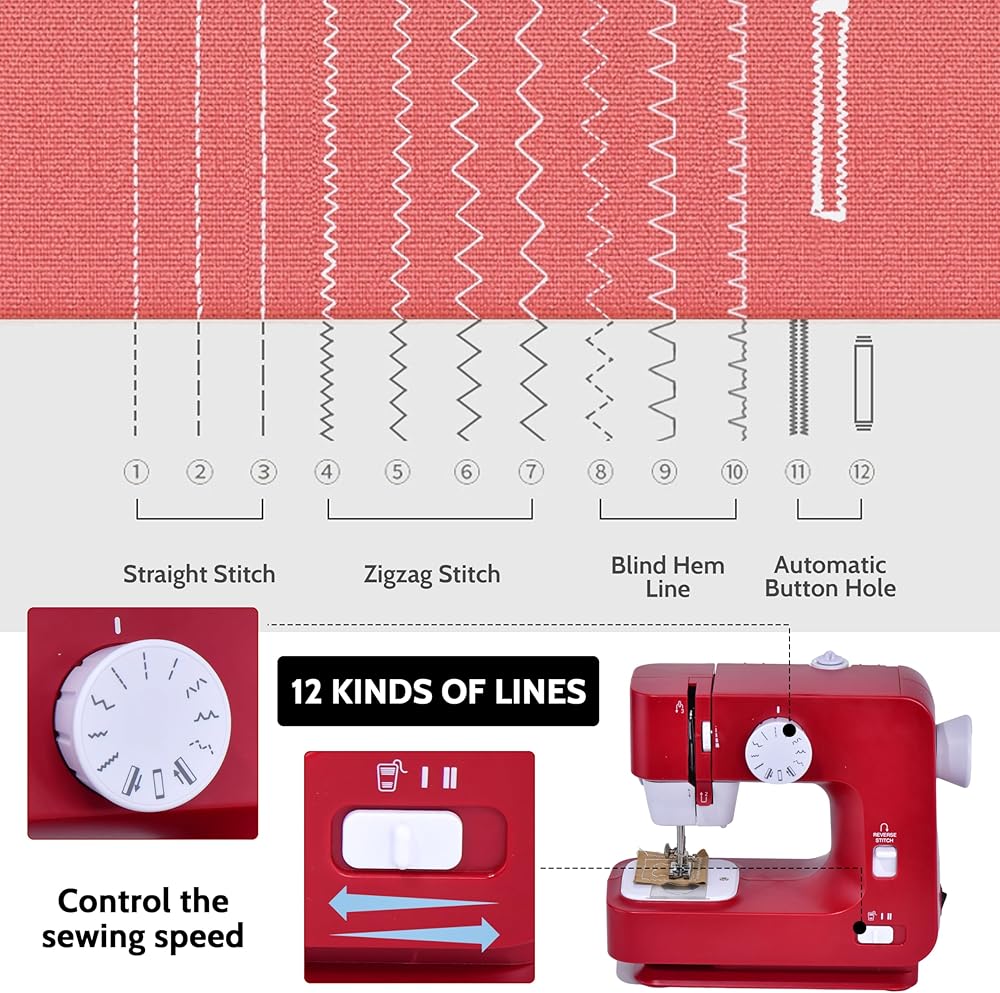 ❤[12 نوعًا من الغرز] الآلة مجهزة بـ 3 أنواع من الغرز المستقيمة، و3 أنواع من الغرز المتعرجة، و3 أنواع من غرز ماتسوري، و3 أنواع من غرز تسوكيواسي، ونوع واحد من عروات، وغرز تقاعدية تستخدم في المنزل. مع كل هذه الميزات، يمكنك تغطية جميع الأعمال التي يمكنك القيام بها في المنزل تقريبًا.
