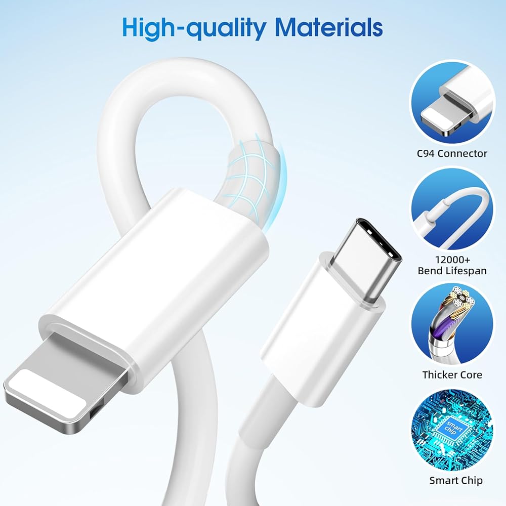 • 【10FT for i.Phone Fast Charger Cable】Comes with an MFi certified 10FT extra long USBC fast charging cable for i.Phone, They are of high quality, pull-resistance, fast charging and 480Mbps high transmission speed. Adopt the latest and faster charging C94 terminal design, ensuring 100% perfect compatibility with all i.Phone devices and eliminates any trigger warning messages.