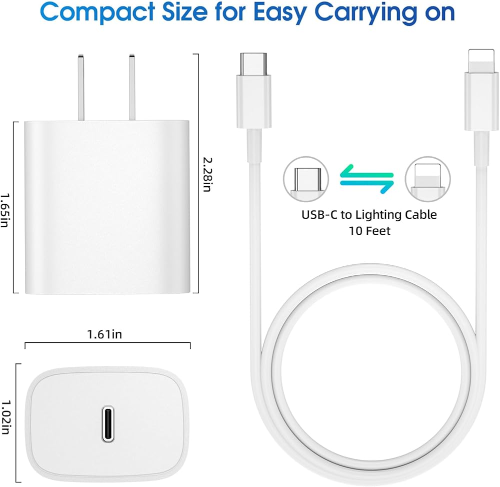 • 【What You Get】(4-Packs) 20W USB-C chargers block FOR i.Phone and (4-Pack) 10FT USB C for i.Phone charging cables. Tangle-free 6 Feet length is convenient for usage while charging and sync at home/office/travel in bed, hotel rooms, and more. Our product Enjoy 24 hours of friendly customer service for additional support and peace of mind. If you have any questions, please contact us.