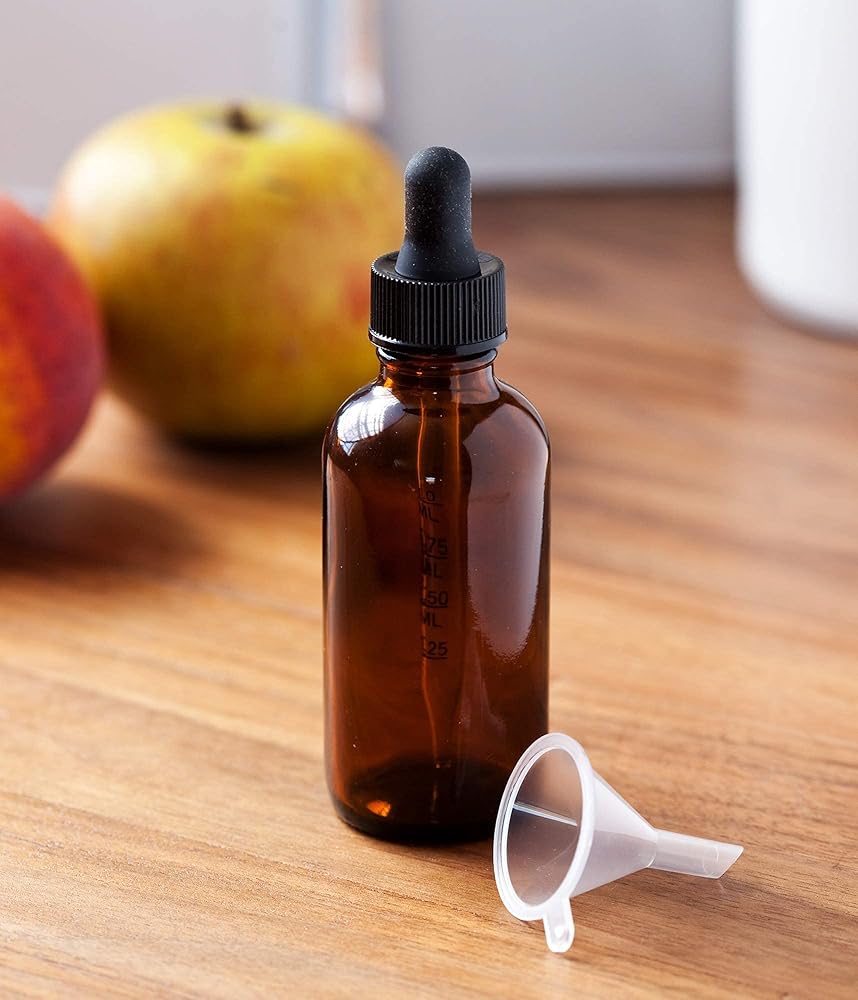 JUVITUS 2 أونصة / 60 مل من زجاج العنبر المستدير مع زجاجة قطارة زجاجية متدرجة (24 عبوة) + قمع