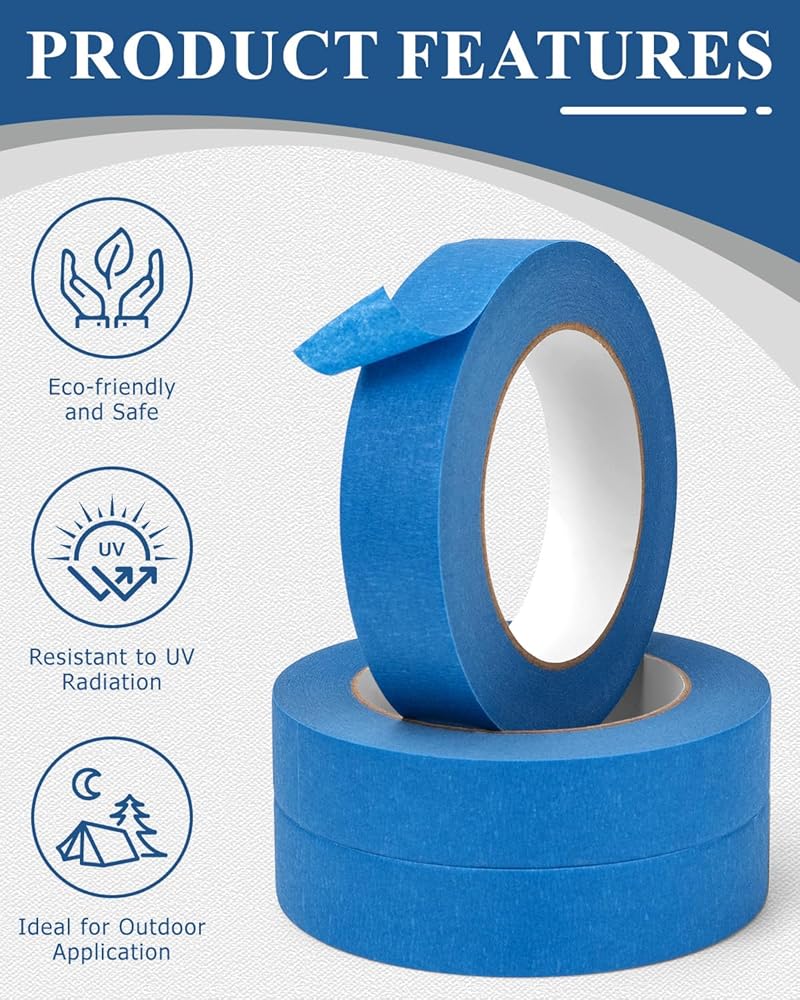 The blue painter's tape is environmentally friendly, non-toxic, UV-resistant and can be used outdoors for up to 14 days without leaving any residue.