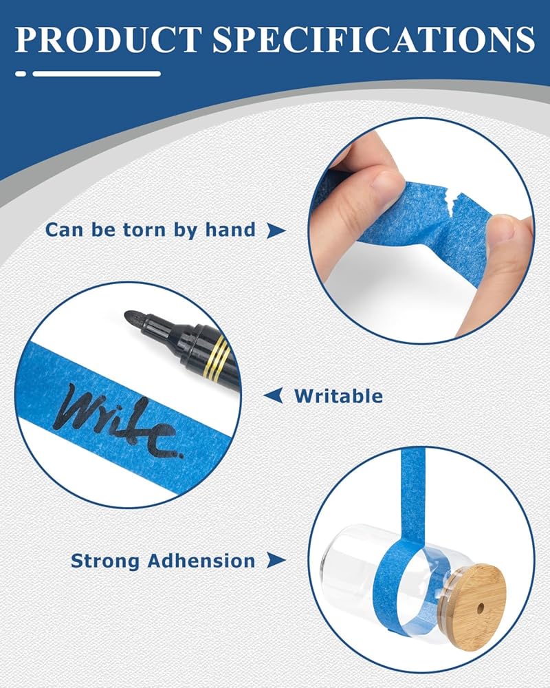 Wide Applications: The blue tape is impermeable, writable, and sealing, this makes the blue tape ideal for various purposes, including wall painting, bundling, trimming, labeling, DIY arts and more