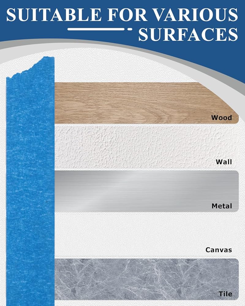 Conquer Most Surfaces: Specially designed blue artist painters tape is versatile, it can be used on various surfaces, including smooth or lightly textured walls, baseboards, tile, glass, metal, plastic and so on