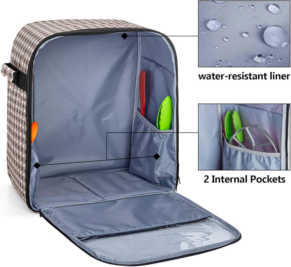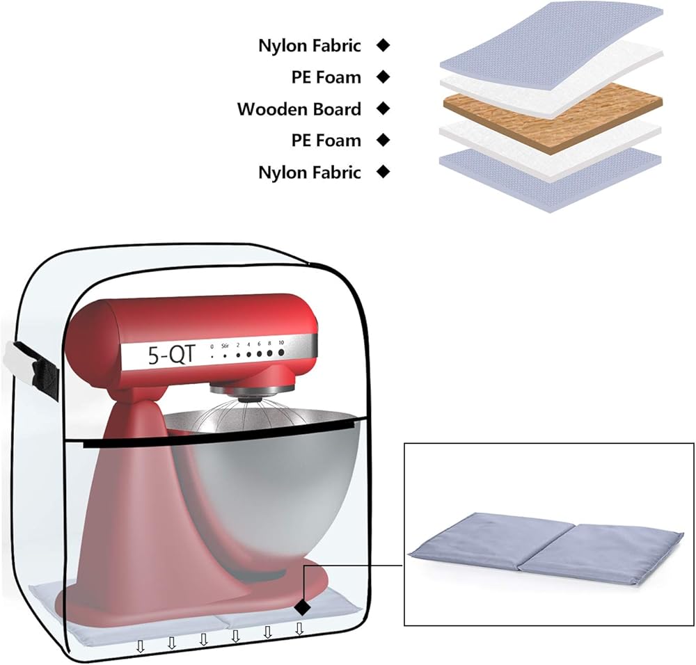 • جودة عالية - مصنوعة من مواد النايلون الفاخرة مع بطانة لحماية ماكينة الخلاط الخاصة بك بعيدًا عن الغبار والخدوش والسوائل. تساعد اللوحة السفلية القابلة للإزالة على الحفاظ على الثبات وتقليل أضرار السقوط على الأرض.