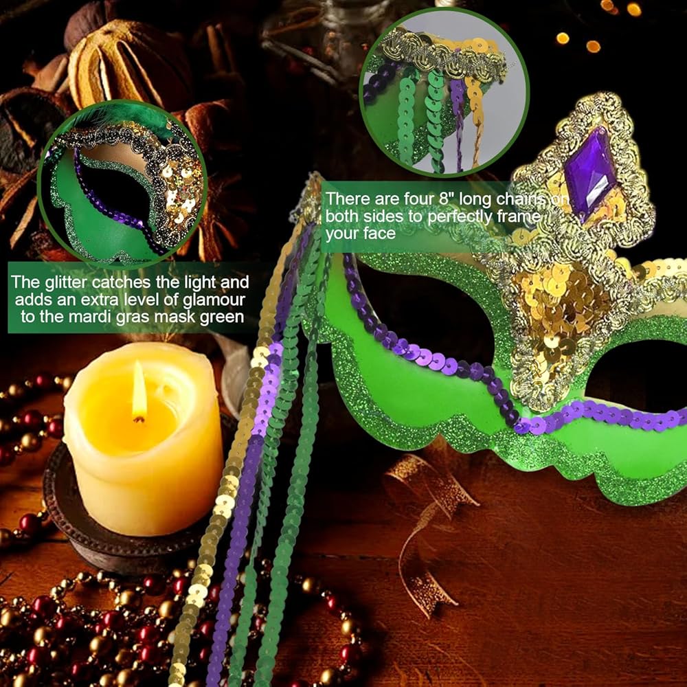 HIGH QUALITY MATERIAL - The mask is made of eco-friendly plastic, add classic mardi gras color elements, both cool and mysterious. The venetian masquerade masks are light weight and comfortable to wear.