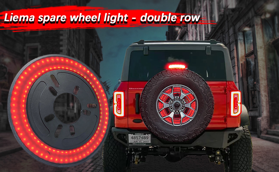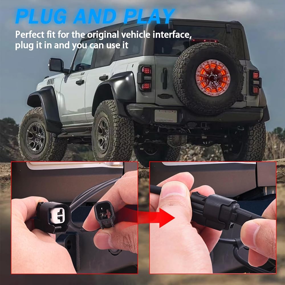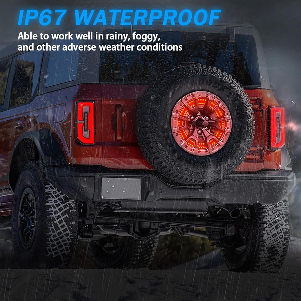 ضوء فرامل الإطارات الاحتياطية لبرونكو (التوصيل والتشغيل) ضوء عجلة خلفية مزدوج LED أضواء عجلة الذيل الثالثة، 150 قطعة LED فائقة السطوع متوافقة مع 2021 2022 2023 Ford Bronco