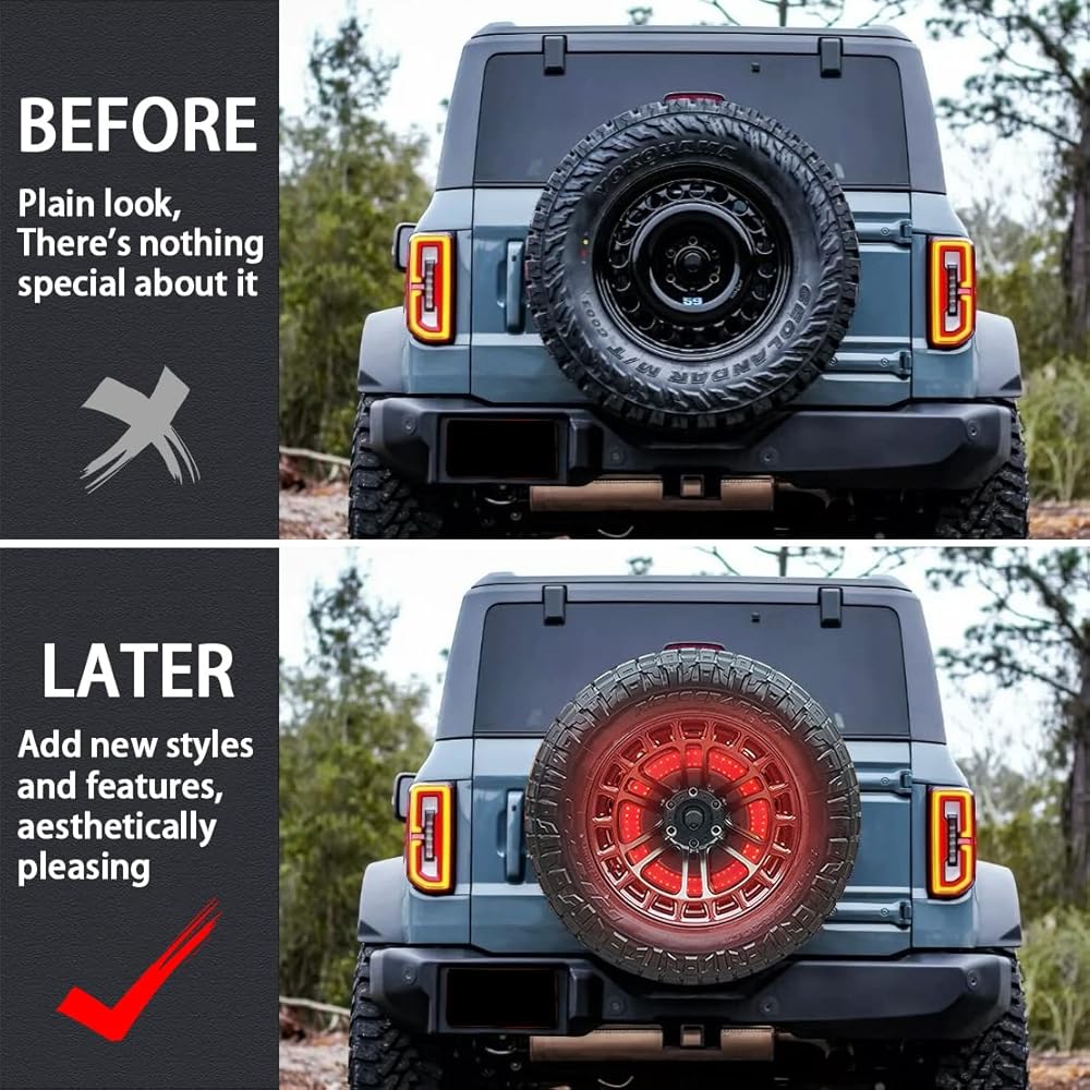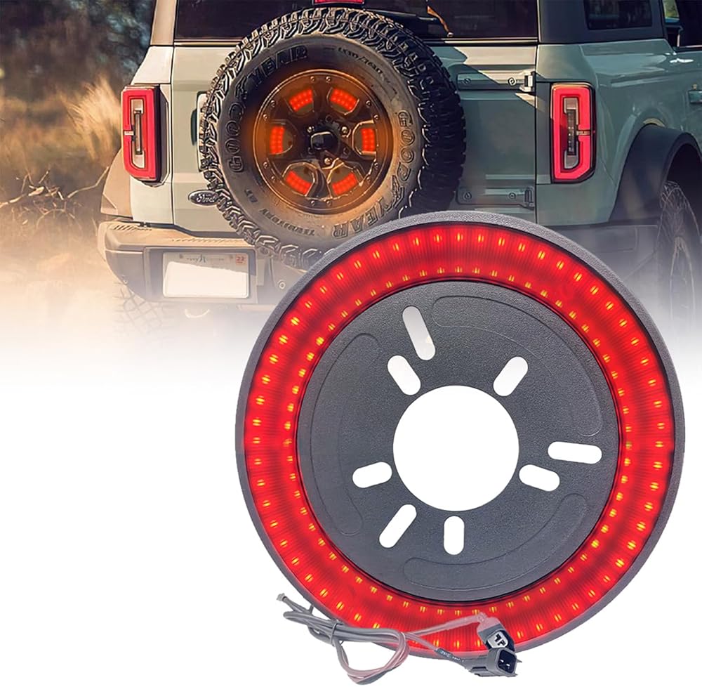 【العبوة متضمنة】قطعة واحدة من ضوء الإطار الاحتياطي LED بطبقة مزدوجة تناسب Ford Bronco (نقدم خدمة ما بعد البيع لمدة 24 ساعة وضمان لمدة عام، إذا واجهت أي مشكلة في كيفية التثبيت، فلا تتردد في الاتصال بي، وسنقدم لي تعليمات التثبيت الأكثر احترافًا والرد).