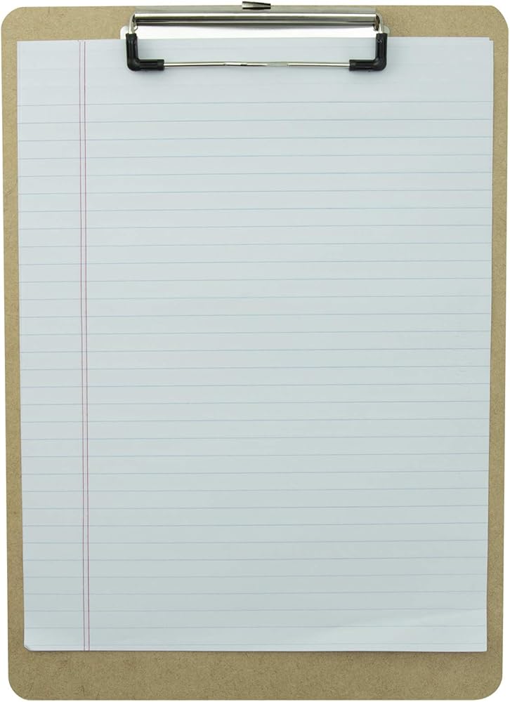 Saunders' hardboard clipboards help you stay organized so you can get work done Each hardboard clipboard has a durable low-profile steel clip with rubber grip corners that securely holds up to 100 sheets of 20lb paper The smooth fiberboard base and rounded corners provide a sturdy portable writing surface while on-the-go or in the field Each clipboard includes a retractable hanging hole allowing the clipboard to be mounted for displaying important information The hardboard bases are made from 100% recycled or recovered materials Saunders proudly assembles each hardboard clipboard in America from domestic and globally sourced components These hardboard clipboards are ideal for coaches contractors crafters delivery drivers nurses parents insurance agents schools students teachers trade professionals warehouse staff and others in the education healthcare and food service fields