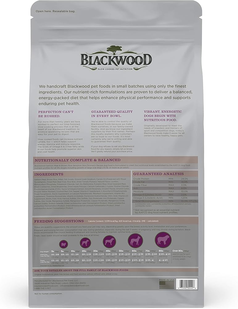 GREAT TASTING, OPTIMAL NUTRITION FOR ALL LIFE STAGES – Blackwood Dog Food is ideal for all breeds and is nutritionally complete for all life stages. Our slow cooking preparation retains nutrients and flavors to create a great tasting kibble dogs crave.