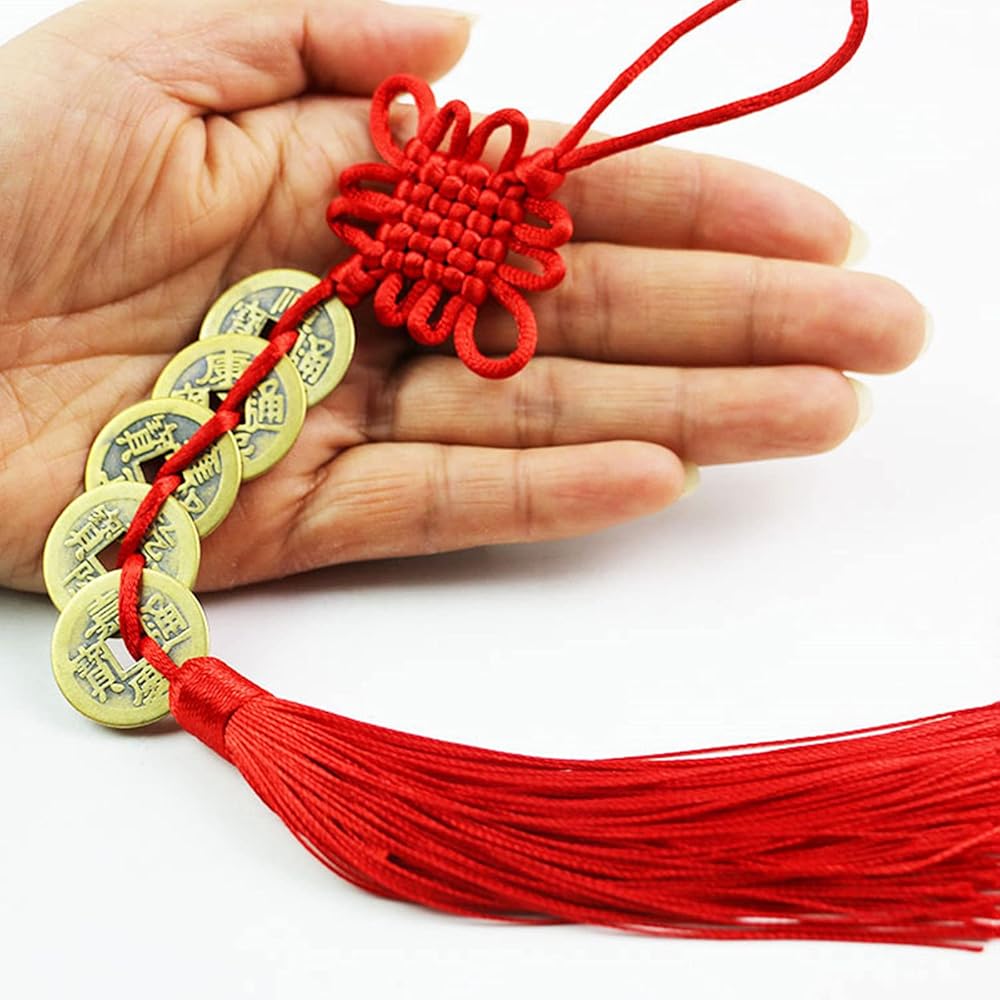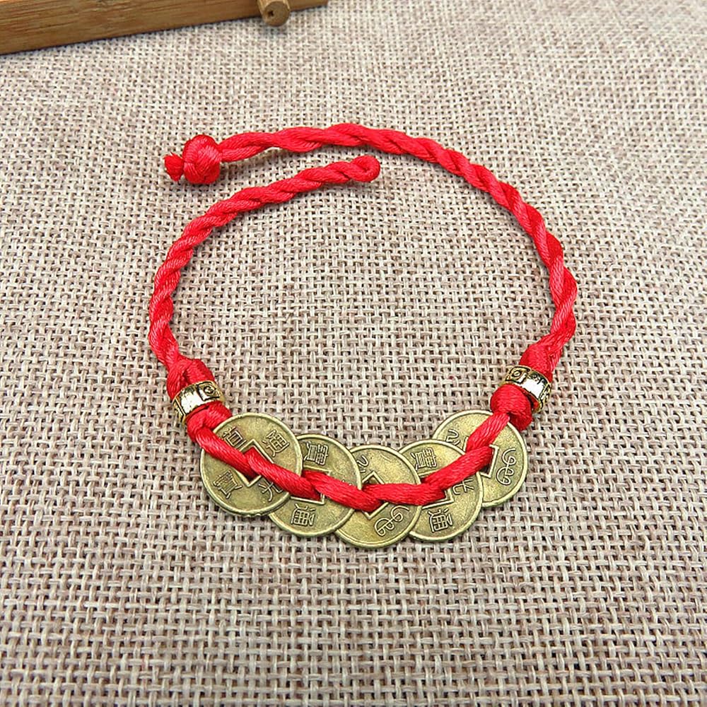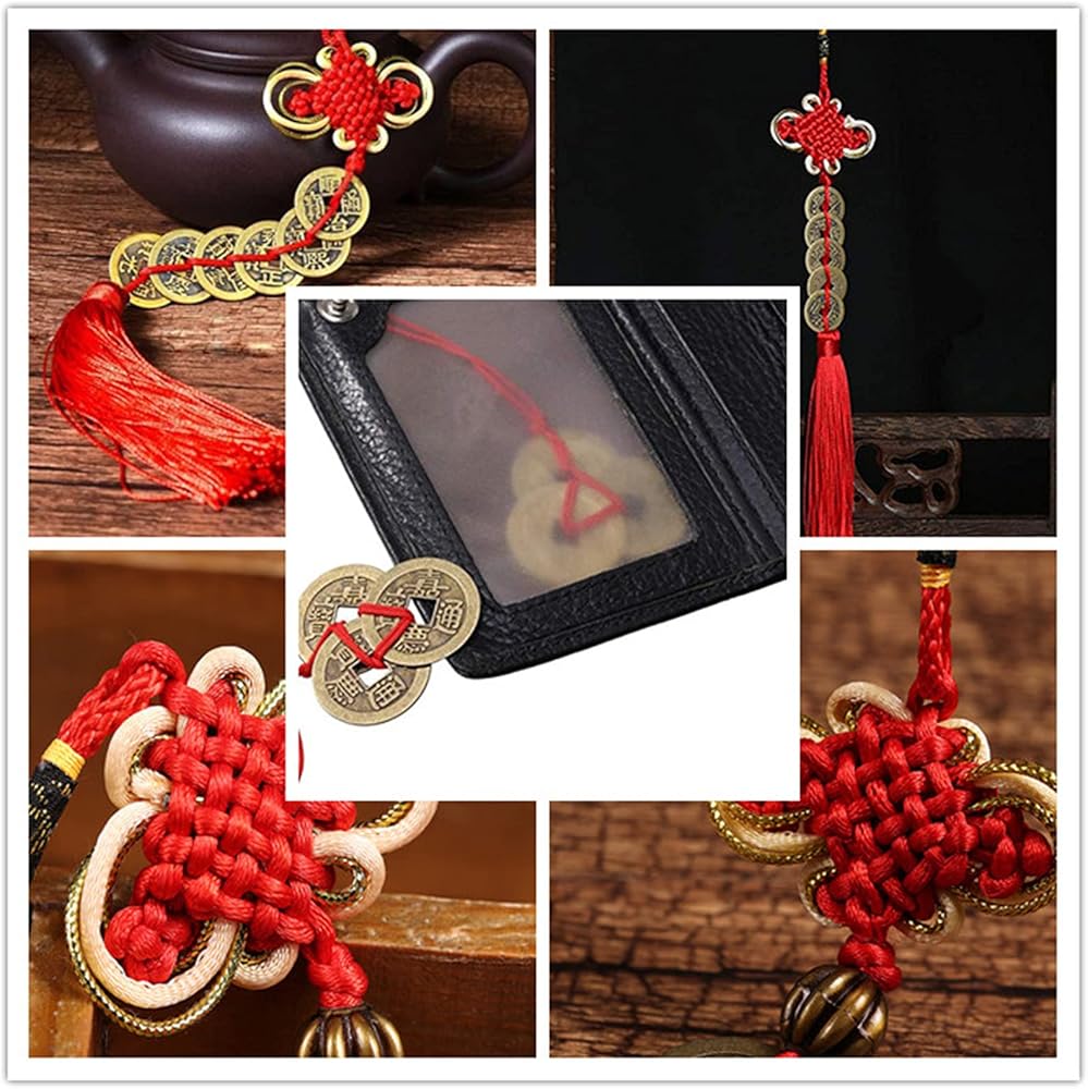 What is Chinese Feng Shui Coins 1.These are authentic recreations of Ching era currency, which were round coins with a square hole in the center. 2.The convention was used to allow people to string coins together into sets of 10, 20, 50 and so forth. However, in Taoist thought the round coin and square hole represent heaven and earth. 3.The circle of the coin represents the heavens, while the hole is the earth at the center. 4. Tradition holds that putting three coins together and binding them with a red string or ribbon completes a Taoist trinity of Heaven, Earth and Humanity. 5. The tied coins are then a kind of good luck charm for bringing prosperity and fortune to the holder. The beliefe is the lucky coins should be placed in a wallet, purse, check book or any in the wealth corner of your home to promote wealth. 6. Reorient hand ties each set of coins with a fine and durable bright red nylon string to insure long lasting luck. Hang a set by your office door or on the monitor of your computer if you use it for work. Package includes: 2 pcs Chinese coins bracelet 2 pcs Chinese knot lucky coins 5 Set Chinese Feng Shui Coins Warm notice: Small and inedible coins, please keep away from kids under 3 years old.