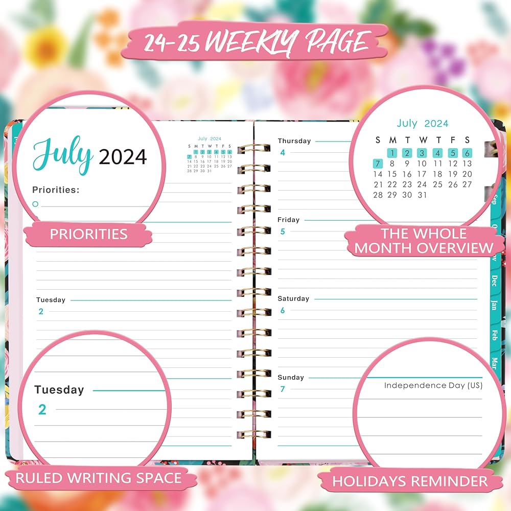 💘 نظرة عامة على مخطط 2024-2025 - يغطي المخطط الأكاديمي 2024-2025 12 شهرًا من يوليو 2024 إلى يونيو 2025 من الصفحات الأسبوعية والشهرية. يساعد مخطط 2024 على تنظيم حياتك وتحسين مهارات إدارة الوقت. مخطط 2024 مع غطاء زهري أنيق لعيد بصري أفضل، مما يوفر لك تجربة تخطيط وجدولة مريحة. حجم المخططات 2024 هو 6.3 × 8.4 بوصة وهو مناسب لحقيبتك أو حقيبتك.