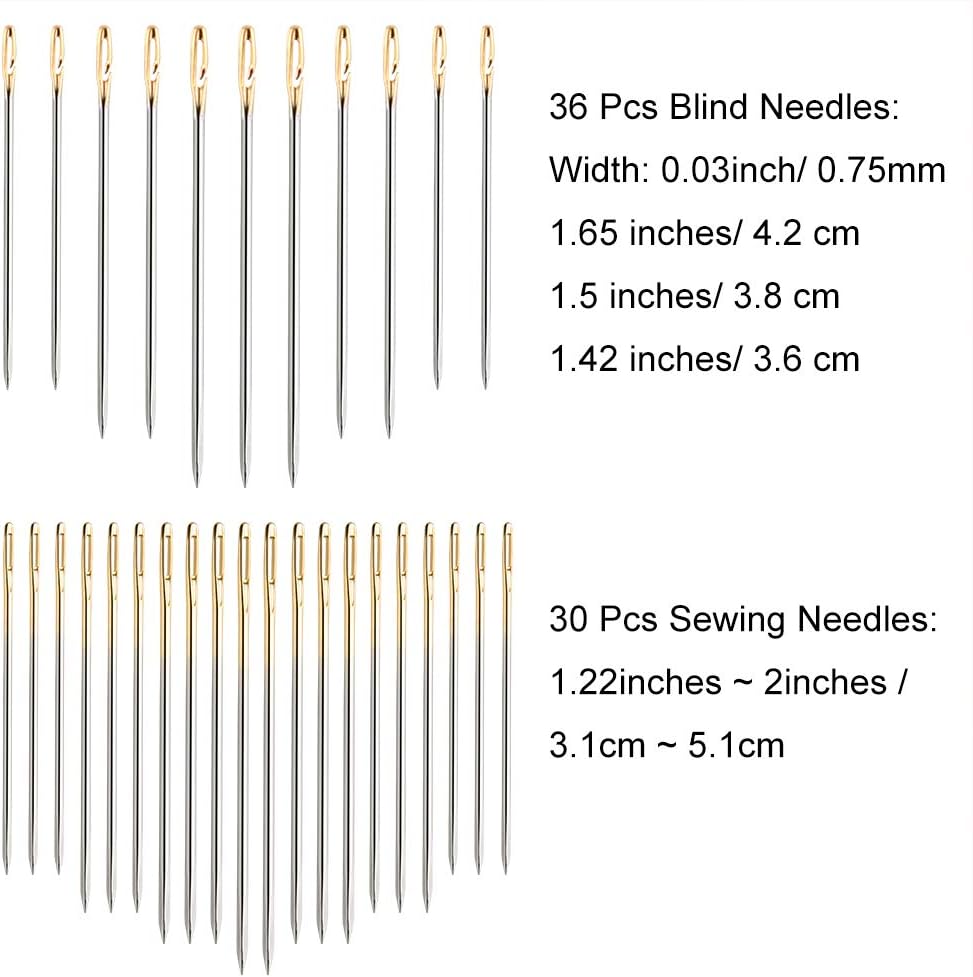 Size: 3 size of different blind needles: 1.65 inches/ 4.2 cm, 1.5 inches/ 3.8 cm, 1.42 inches/ 3.6 cm, sewing needles: 1.22inches ~ 2inches / 3.1cm ~ 5.1cm