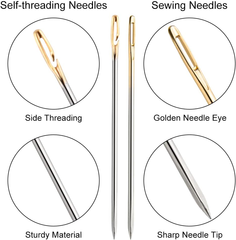Material: Self Threading needle made of high-carbon steel and golden needle eye, enough quantity and assorted sizes to meet your different needs