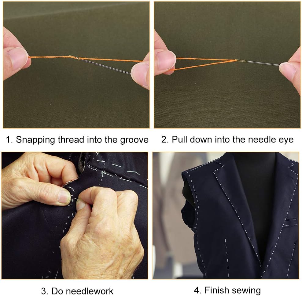 Easy to Use: If you want to thread, simply slip thread into the groove at the top of the needle's eye and pull down into the eye, spent less time to thread your needles