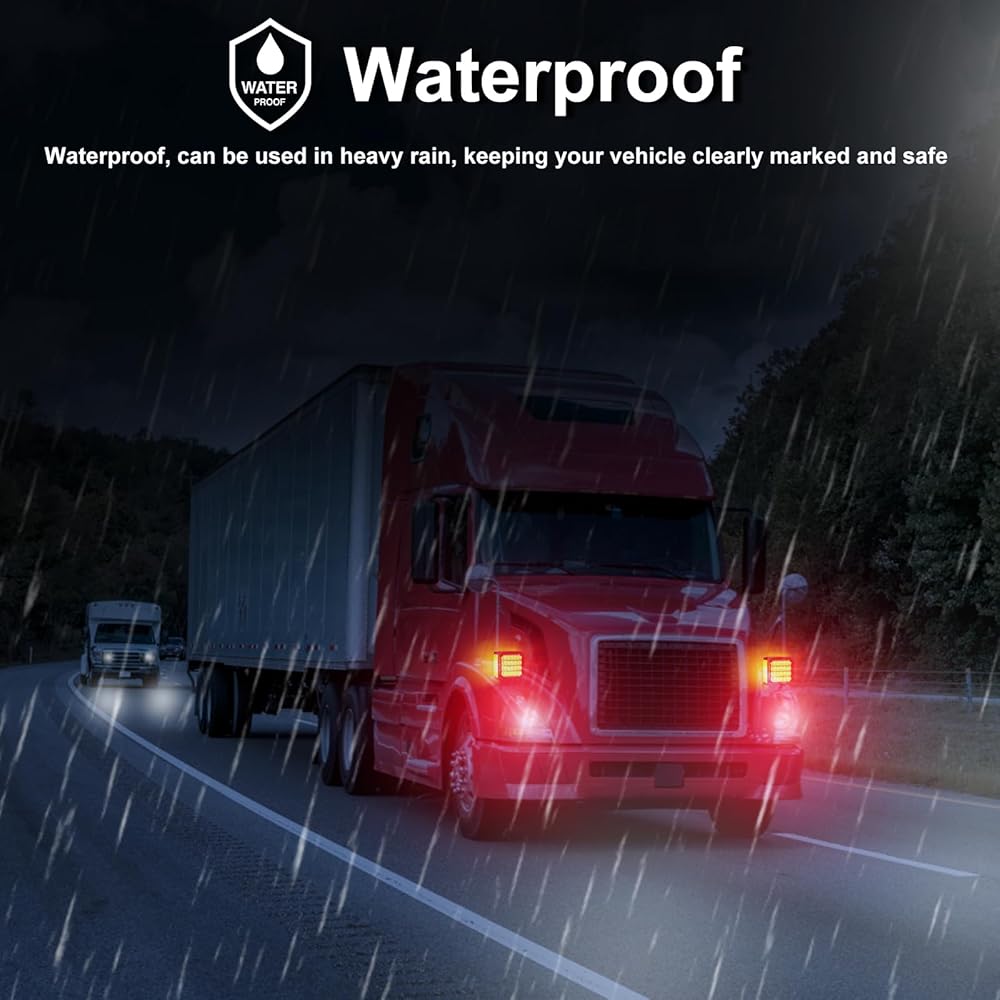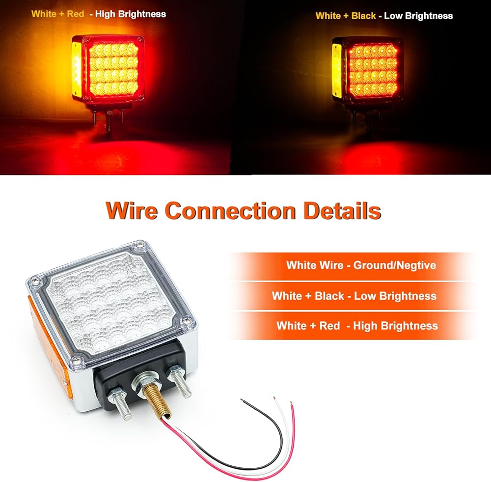 نصائح الأسلاك: السلك الأبيض هو الأرض/السلبي؛ سلك أبيض + سلك أسود: ثلاثة جوانب تعمل، الجوانب الأمامية والخلفية منخفضة السطوع؛ سلك أبيض + سلك أحمر، الجانبان الأماميان فقط يعملان وسطوع عالي؛ مقاومة للماء بدرجة IP67 تمامًا، ويمكن استخدامها بحرية في الأمطار الغزيرة، مما يسمح بوضع علامة واضحة وآمنة على شاحناتك؛