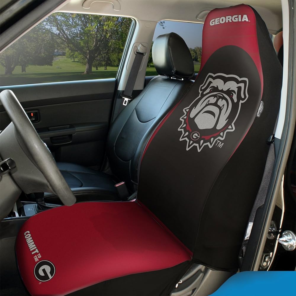 Coverking USCSELA117 University of Georgia Bucket Seat Cover (Collegiate 50/50) Universal Fit offers Coverking's famous fit, finish, and protection now combined with vivid, full graphics of your favorite school. Soft sheen micro suede with patented finish is comfortable and durable. Easy To Install and is an affordable alternative to custom seat covers premium design and construction for durability with stretch seat backing for snug, no slip fit and complete finish look. Not recommended on seats with side airbags. Each seat cover is sold individually.