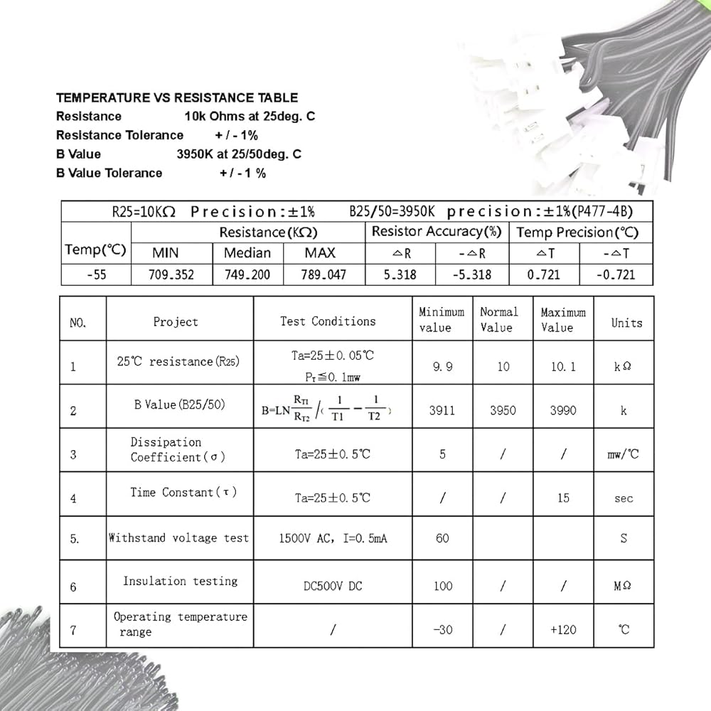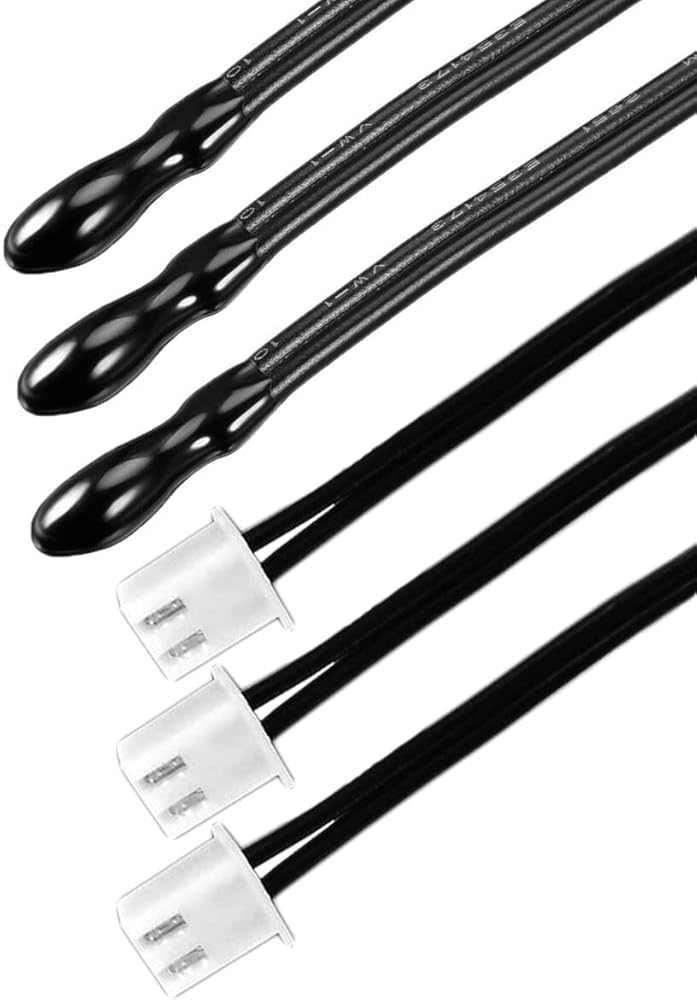KOKISO 10K 3950 Ohm NTC الثرمستور مسبار مستشعر درجة الحرارة، 1% طول كابل دقيق 1 متر مع قابس XH2.54-2P لمكيف الهواء (عبوة من 5)