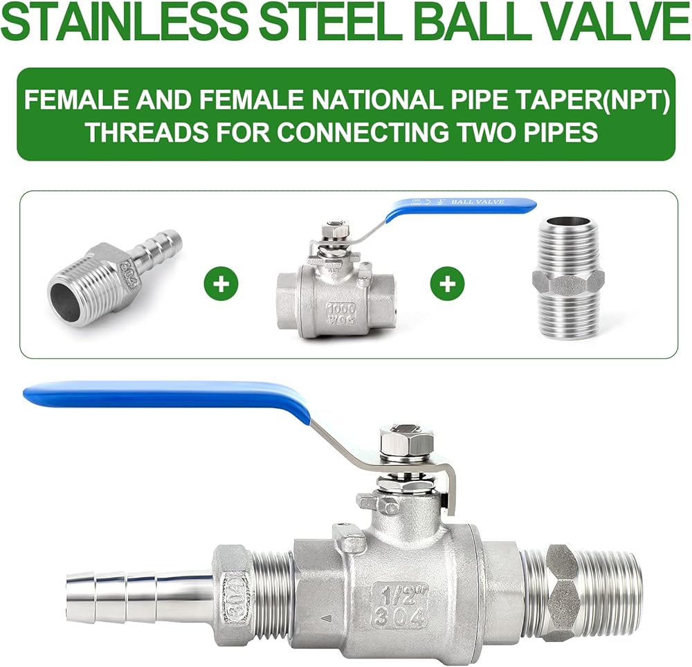 -1/2" FNPT threads for connecting to male threaded pipe fittings