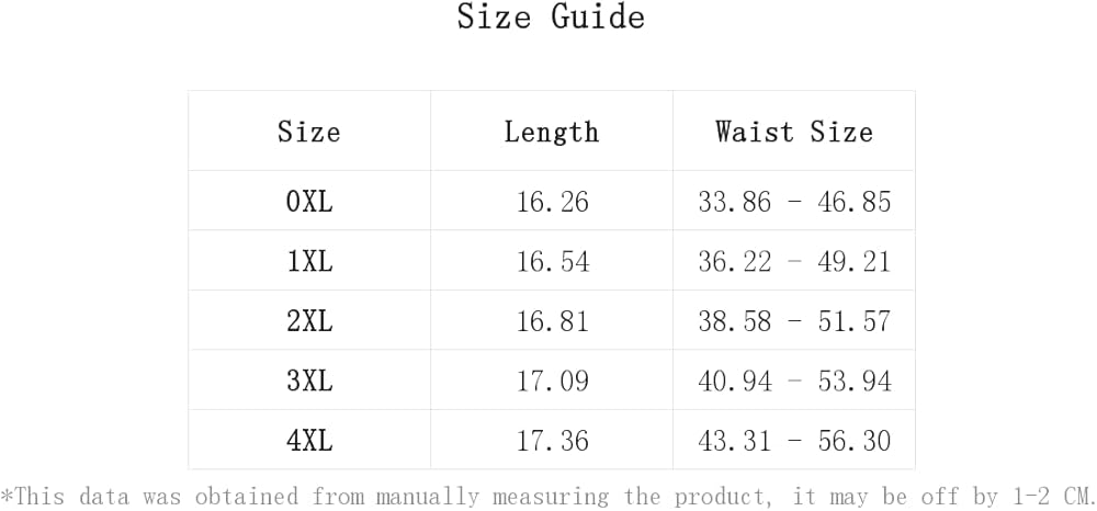 3XL:Length:17.1IN,Waist Size:40.9-53.9IN