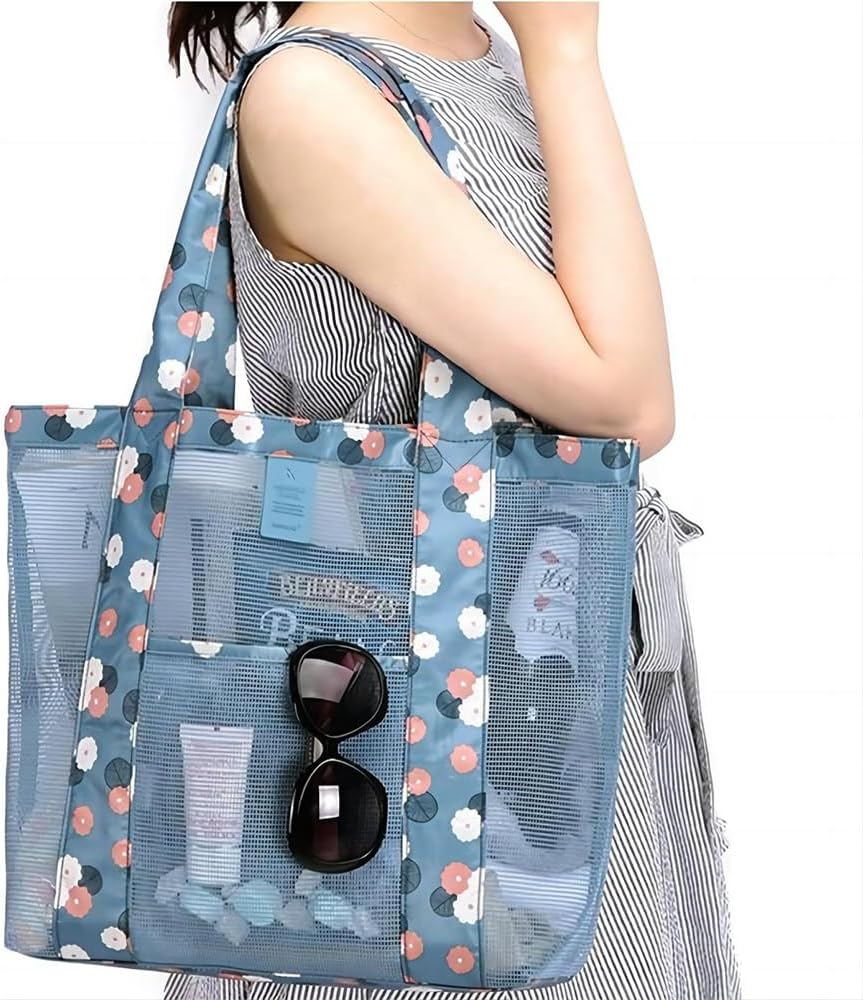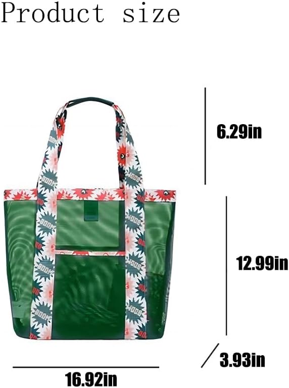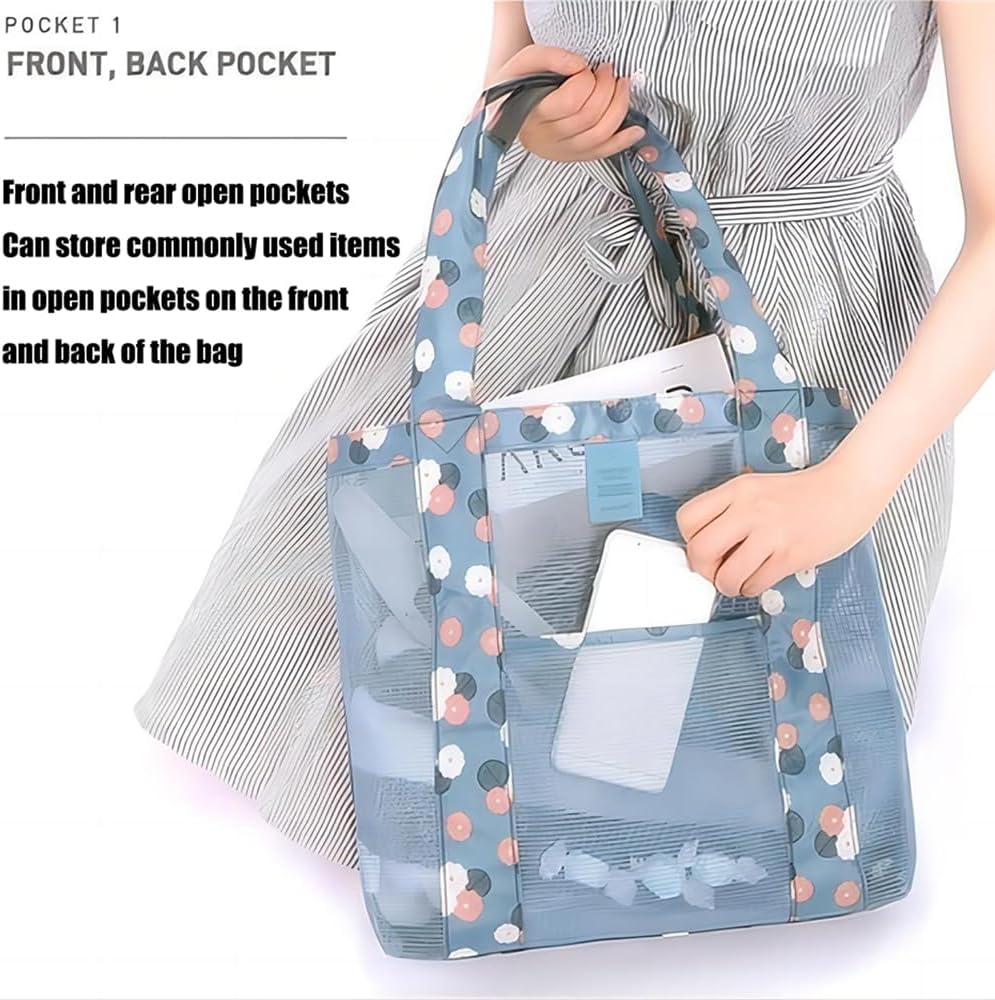 MATERIAL: The beach bag made with lightweight, strong mesh and durable fabric, mesh beach tote is waterproof, sand-free, tear-resistant and easy to clean. Breathable design allows for quick-drying.