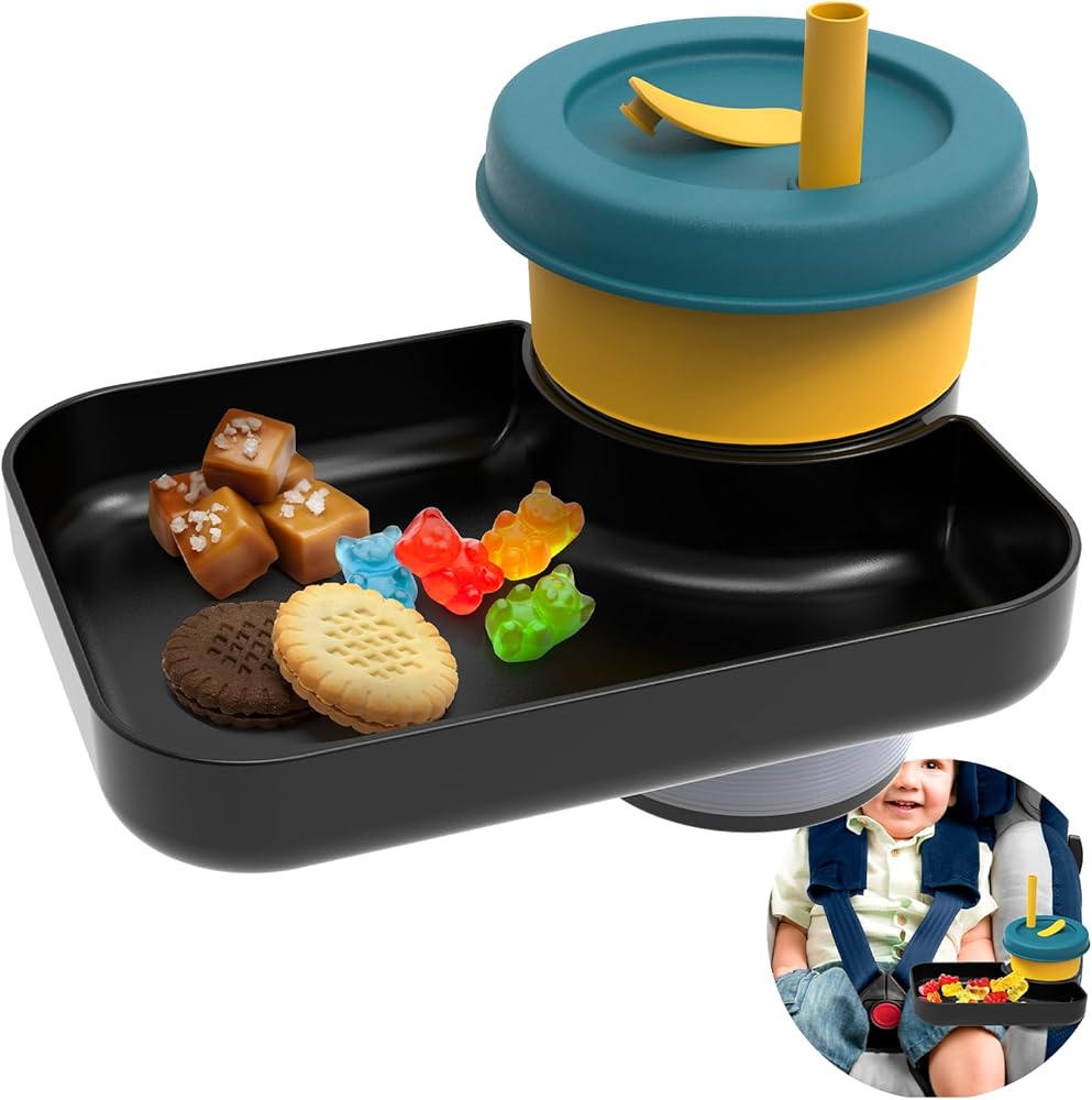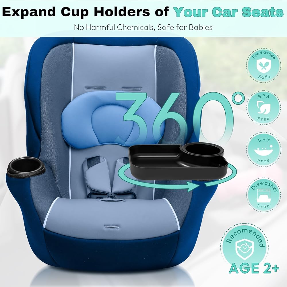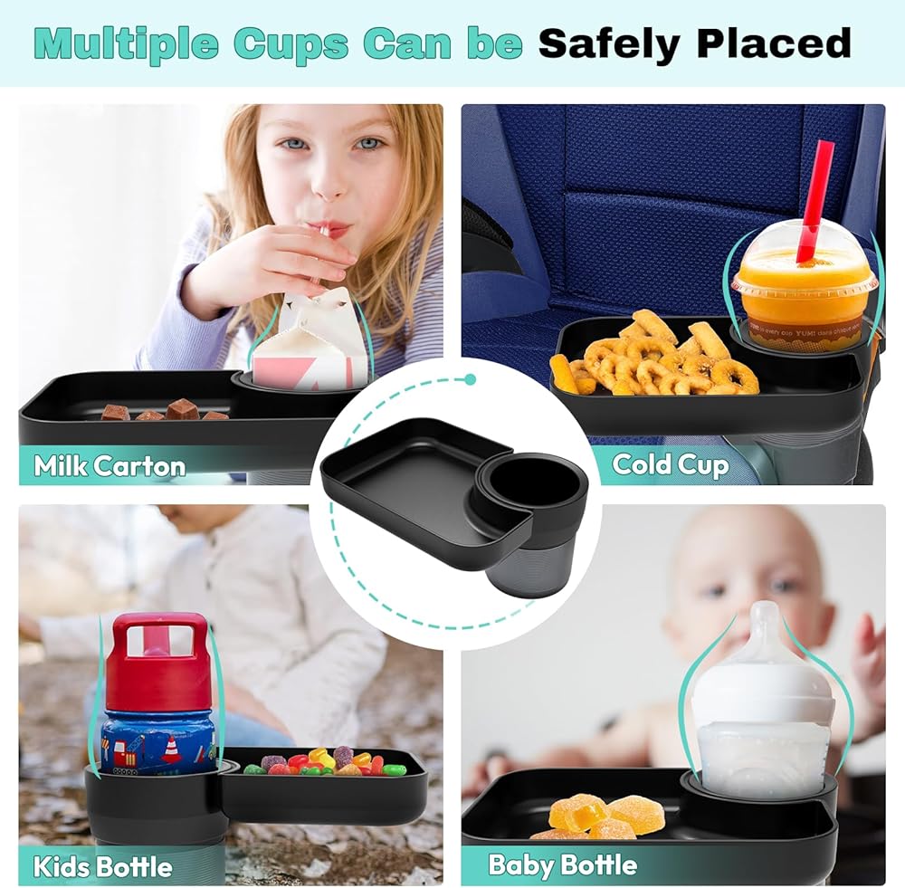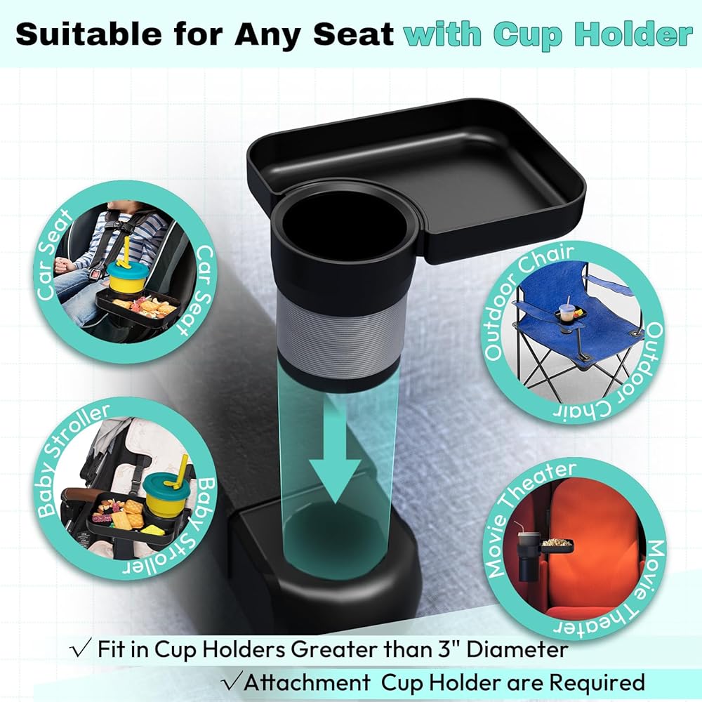 صينية مقعد السيارة للسفر للأطفال، قم بتحويل حامل الأكواب الخاص بك إلى صينية للاستخدام مع مقاعد السيارة، الداعم، عربة الأطفال وفي أي مكان به حامل أكواب، أساسيات رحلة الطريق للأطفال الصغار للوجبات الخفيفة والترفيه