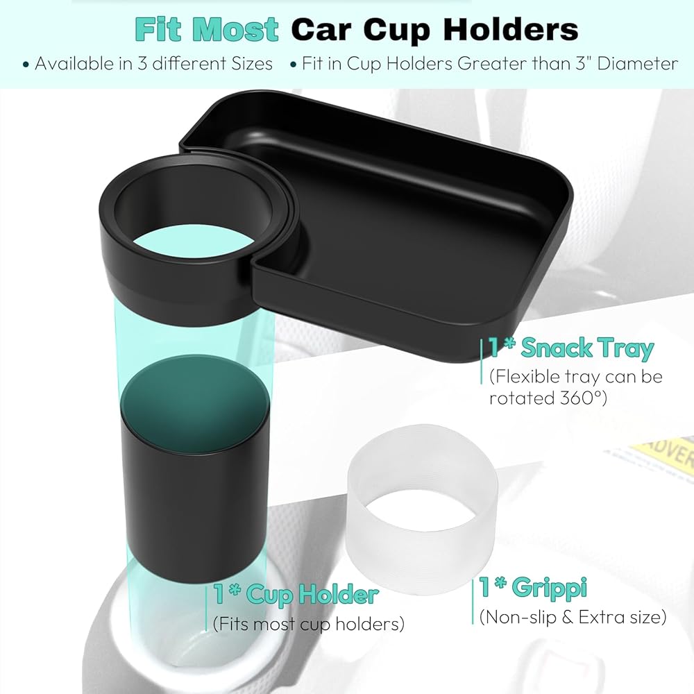 مناسبة لمعظم حاملات الأكواب: الصواني والأكواب و"Grippi" متوفرة في 3 أحجام مختلفة، مما يسمح لك بتناسب معظم حاملات الأكواب. (ملاحظة: يمكن لـ Grippi أيضًا زيادة الاحتكاك بين الصينية والجدار الداخلي لحامل الأكواب في مقعد السيارة، مما يضمن وضعًا أكثر أمانًا).