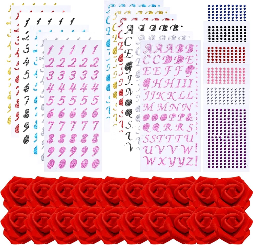 DIY GRAD CAP DECORATIONS KIT: You will get 38pcs graduation cap decorations in total, there are 6sheet glitter letter stickers, 6 sheets glitter number sticker, 6 sheets acrylic rhinestone stickers and 20pcs red foam rose. You can use this complete cap decorations kit to make your unique grad cap decoration.