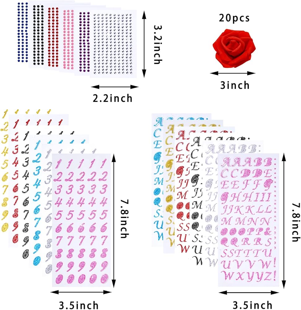 QUANLITY CAP DECORATIONS FOR GRADUATION KIT: DIY grad cap decorations kit come with a full set, the glitter alphabet letter number stickers are made from foam, the rhinestone stickers are made from acrylic and the red rose are made from foam. They are lightweight and easy for you to use.