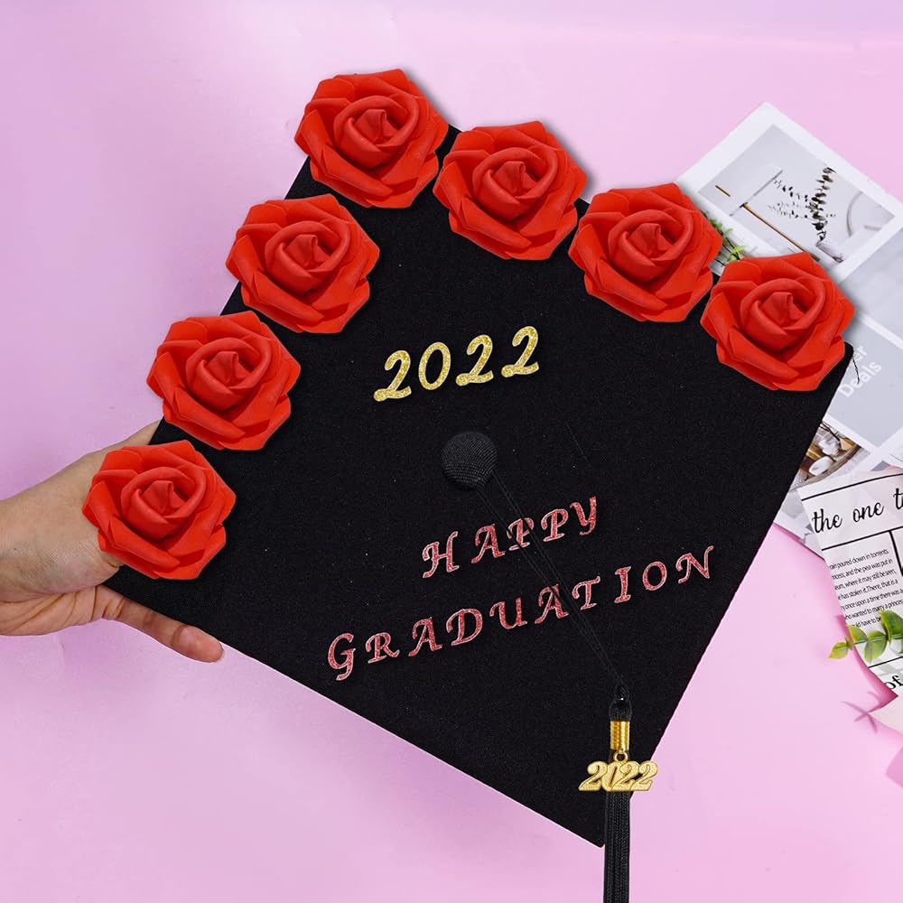 Come and choose our 38 Pieces Red Rose Faux Flowers Cap Decoration Kit for Graduation Cap DIY Decorations.