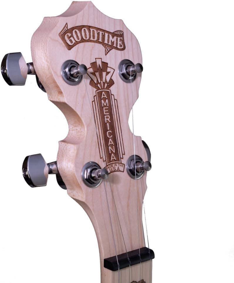 ENGRAVED PEGHEAD AMERICANA: Beautiful engraved peghead featuring the Americana name, Goodtime logo, and scrollwork design. Collections: 5 String Banjos, Banjos, Featured Banjos, Goodtime Banjos, In Stock, Openback 5-String Banjos Type: 5 String Banjos