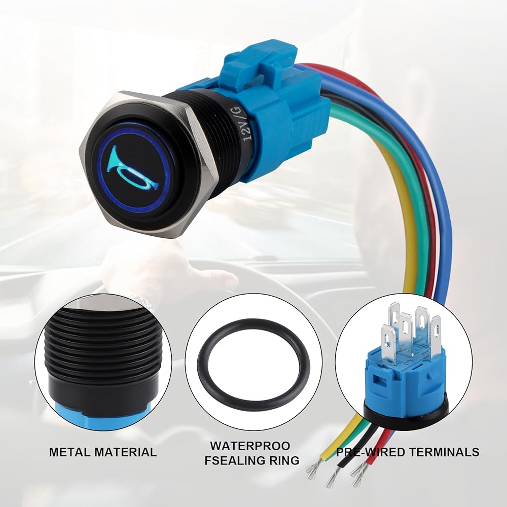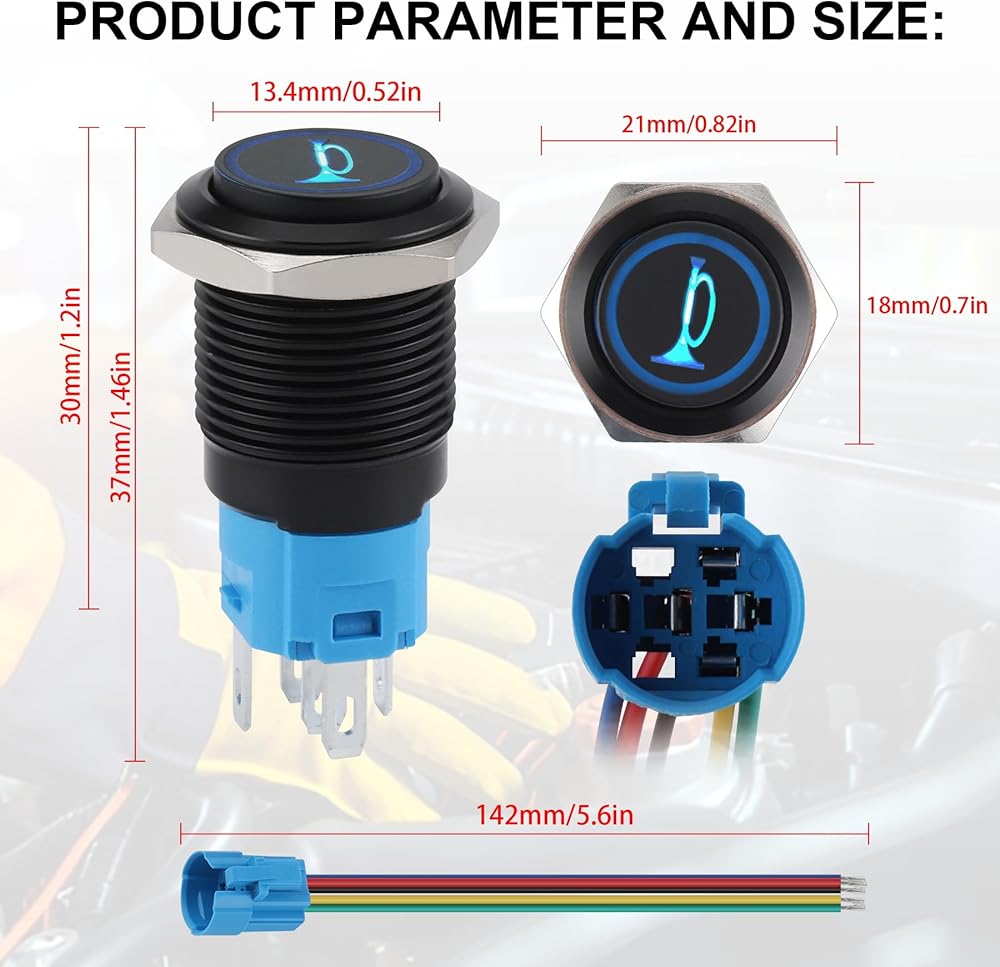 • Momentary Push Button Switch rating:Voltage: 12V;Pins: 5;Durable: More than 50,000 Cycles Long electrical life.